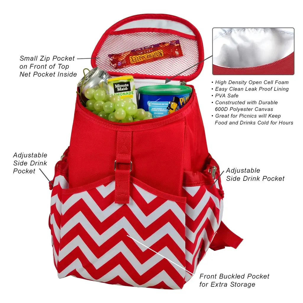 Picnic At Ascot - Cooler Backpack Bag - Red/chevron