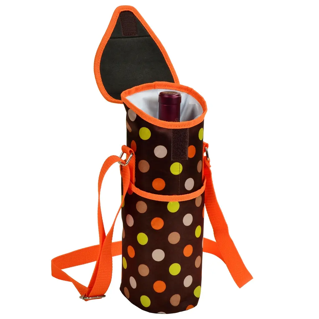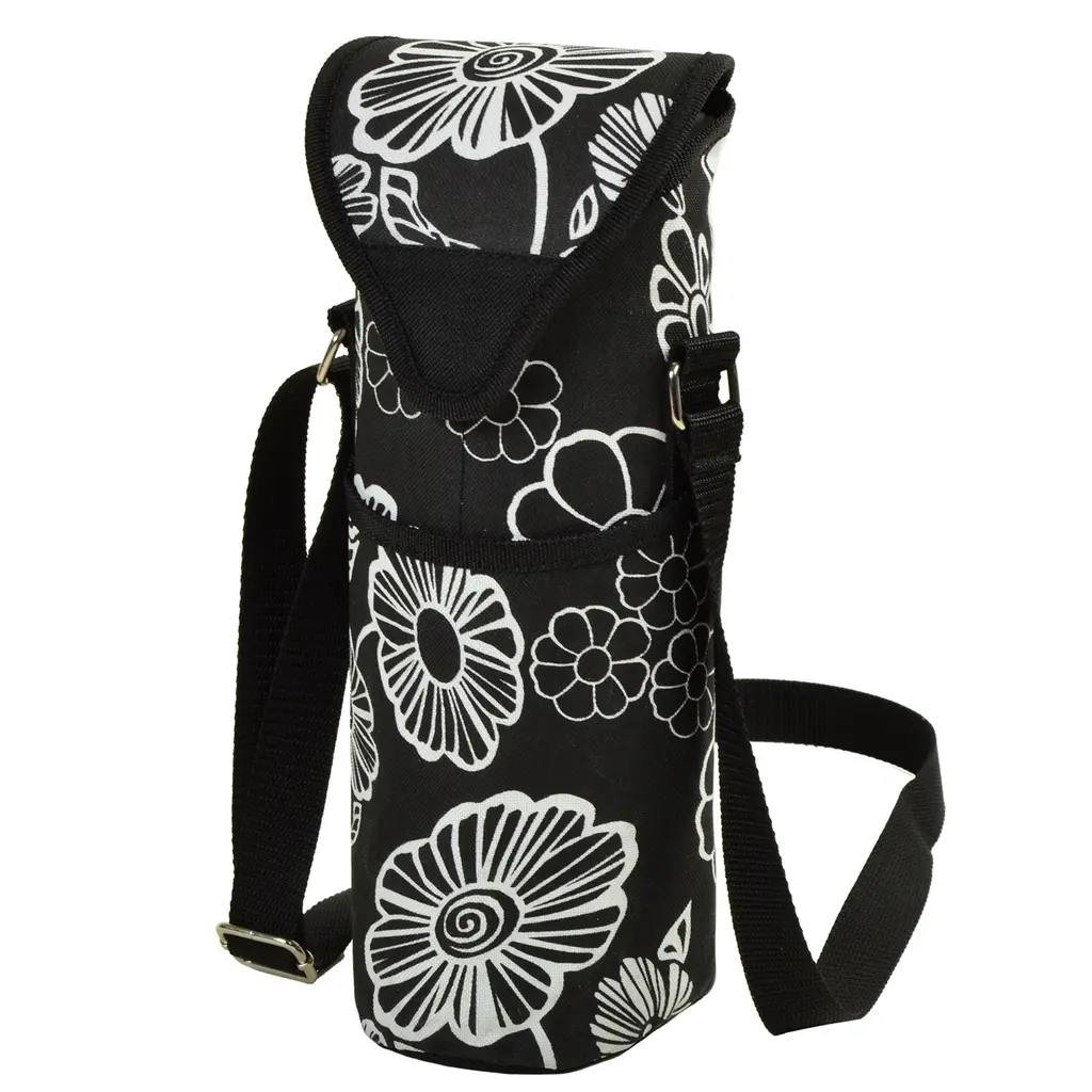 Single bottle carrier from our Night Bloom Collection, is simple and stylish. It features Thermal Shield insulation, a PEVA waterproof lining, and an adjustable shoulder strap for easy carrying. hook and loop closure. Front pocket. Designed in the USA. Lifetime Warranty.