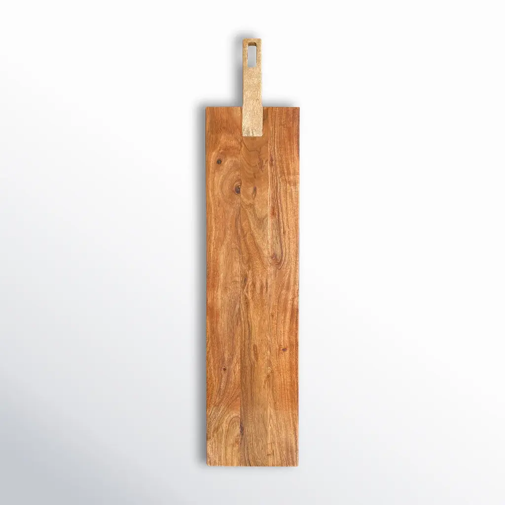 Its contrasting timber stripes add rustic flair. Save cabinet space by hanging the board from the leather rope on its handle. Perfect for serving guests an assortment of tasty treats.