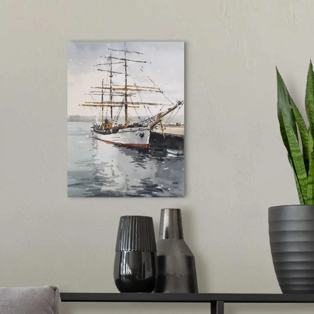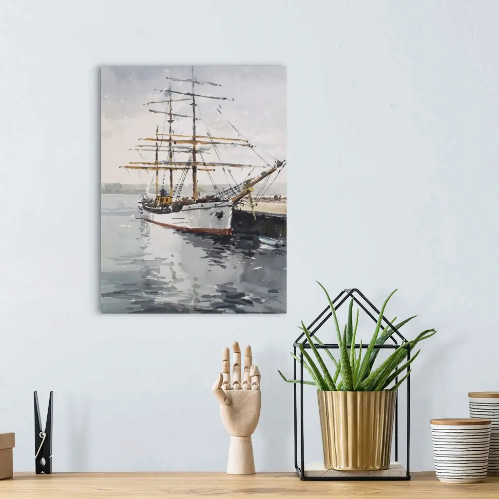 Gestural brush strokes of muted watercolors illustrate Picton Castle visited Sydney, Australia in 2013.