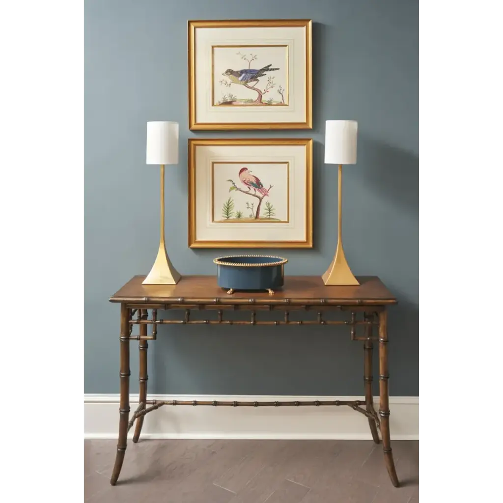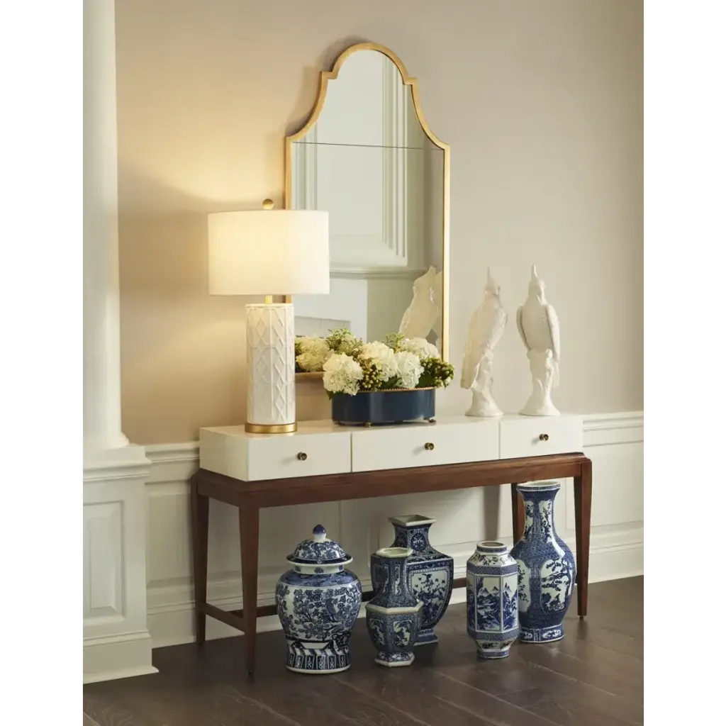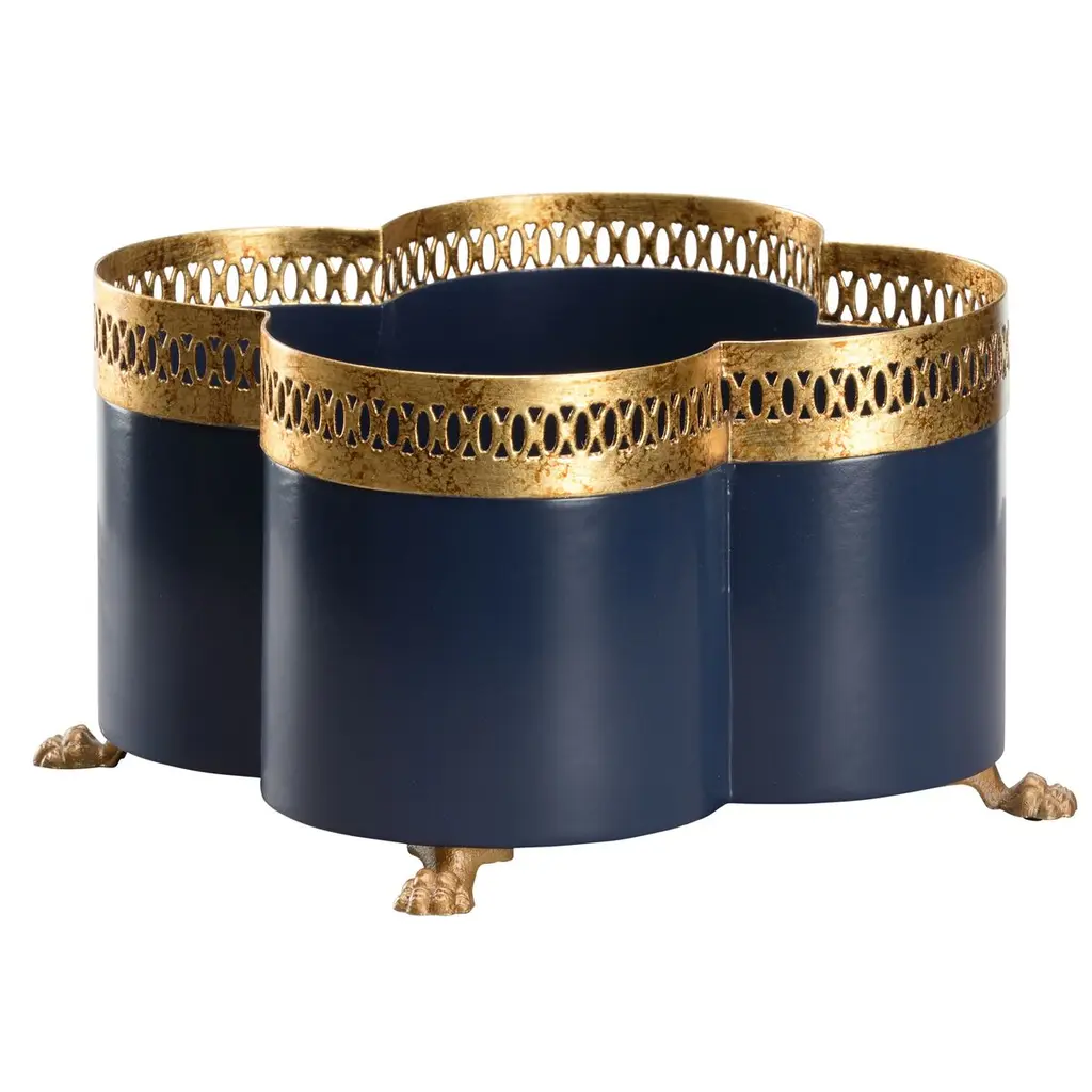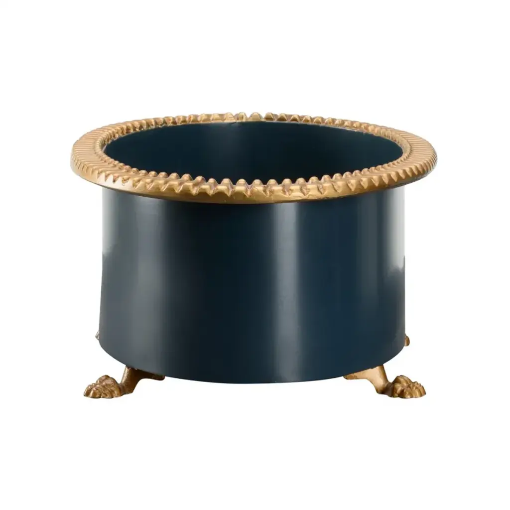 Beautiful oval planter with pie crust edge on gold feet. Designed by Claire Bell.