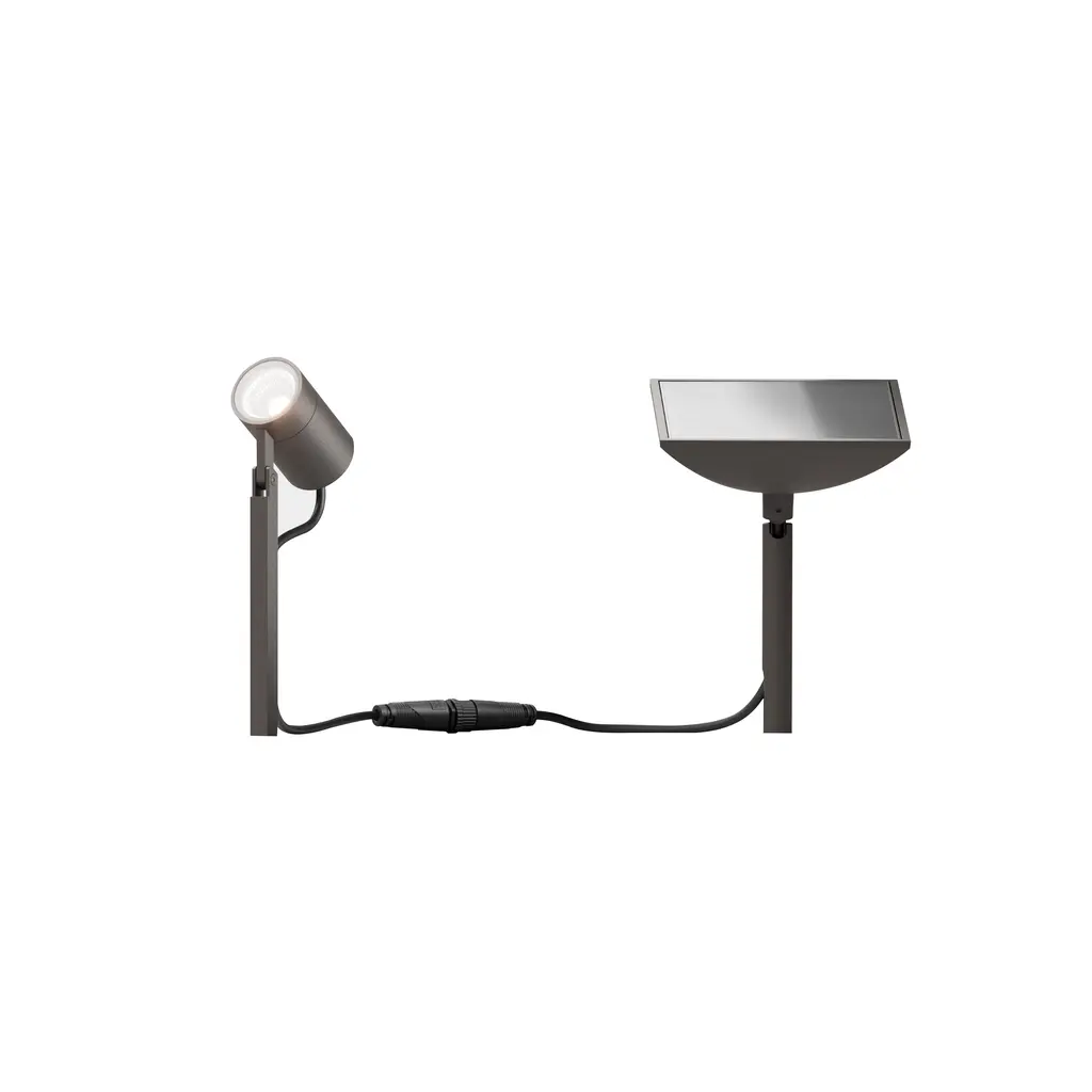 The Piek Mini Solar Light is powered by a built-in solar panel and a rechargeable lithium-ion battery, it functions independently without needing a power connection. Once fully charged, it operates for about 15 hours, automatically switching on at dusk and off after five hours. The durable construction includes a powder-coated aluminum head and stainless-steel pole, making it ideal for unpaved areas like gardens and green spaces.