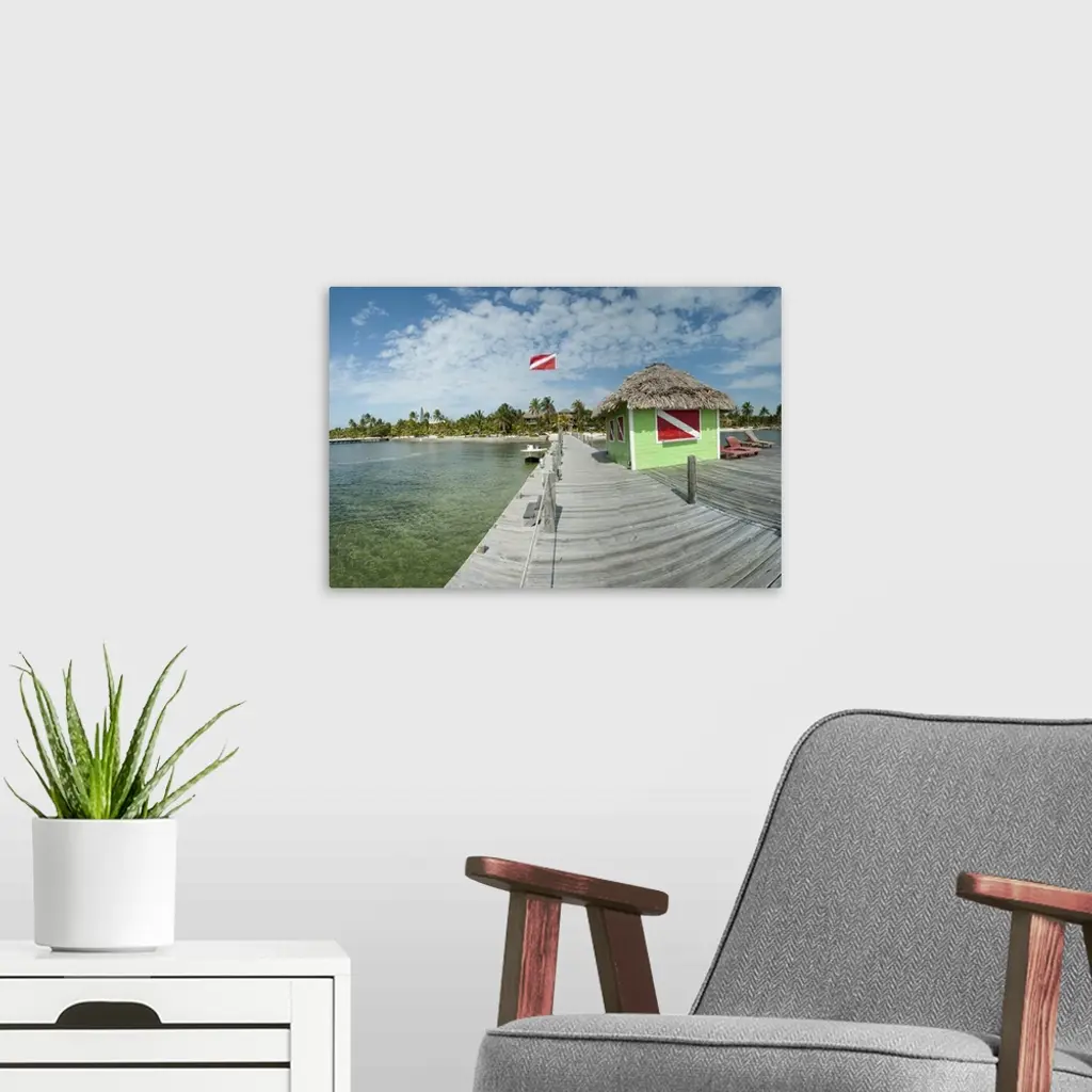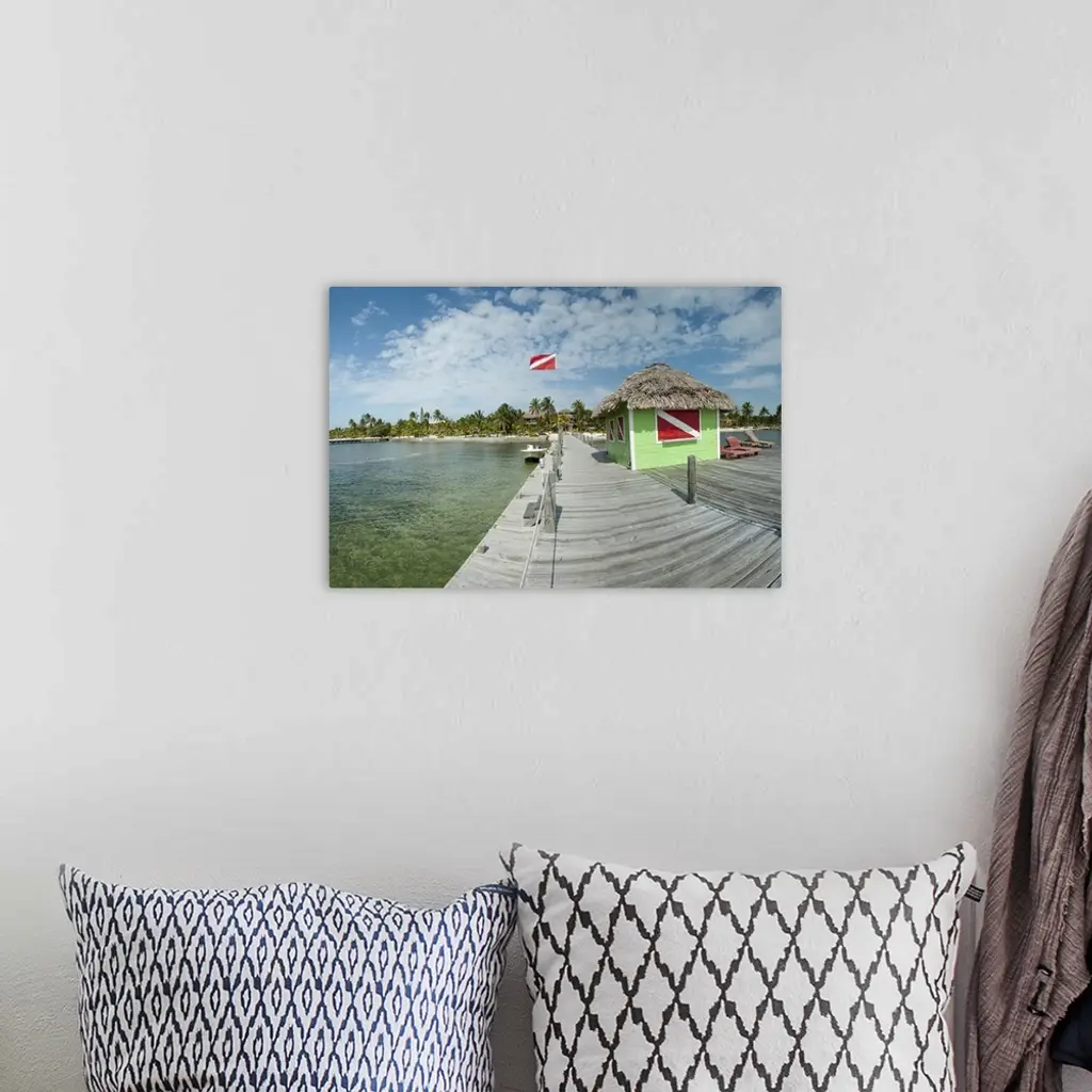 Pier in the sea, Portofino Resort, Corozal District, San Pedro, Ambergris Caye, Belize wall art for home and office decor. Discover canvas art prints, photos, mural, big canvas art and framed wall art in GreatBigCanvas.com's varied collections.