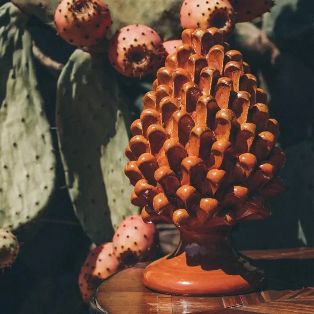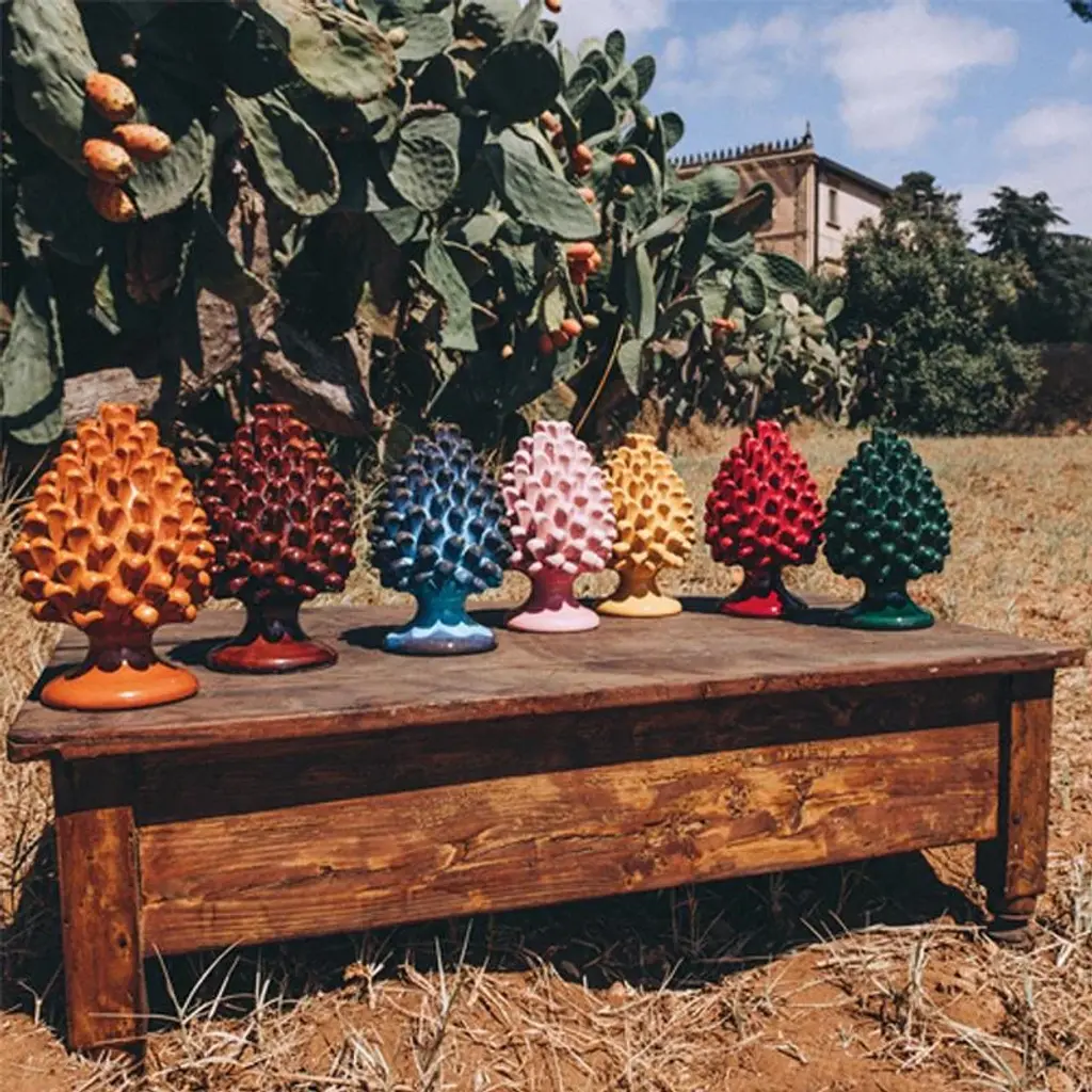 "the pine cone has been a symbol of caltagirone and sicily ceramics for centuries. It embodies the sense of strength, prosperity, immortality, fertility and it is a symbol of good luck. The pine cone has enriched and decorated the houses of the peasants as well as those of the nobles, standing out on the gates or balconies of the great palaces and villas of the island's aristocracy and it continues to be a wonderful decorative object even today. Crita brings pine cones into your home respecting their unique and traditional shape forged by our master ceramists with great patience. Obviously, we put our innovative spirit always looking for something different. Here, our pine cones are covered with a cascade of unusual colors. These are the colors that crita selects with great attention for our creations. Evocative, bright and refined colors. Some truly sophisticated and never seen before such as our bruno di santo pietro, ocra di mongialino or the very exclusive blu delle correnti. As always crita acts as a bridge between the millenary art of caltagirone ceramics and the 21st century. Welcome to the new era of pine cones." details & dimensions • material: ceramics • dimensions (in): w 5,11 x d 5,11 x h 7,87 • dimensions (cm): l 13 x d13 x h 20 • handmade in italy
