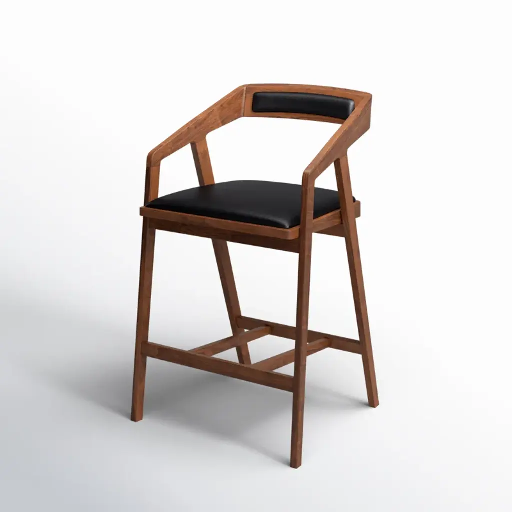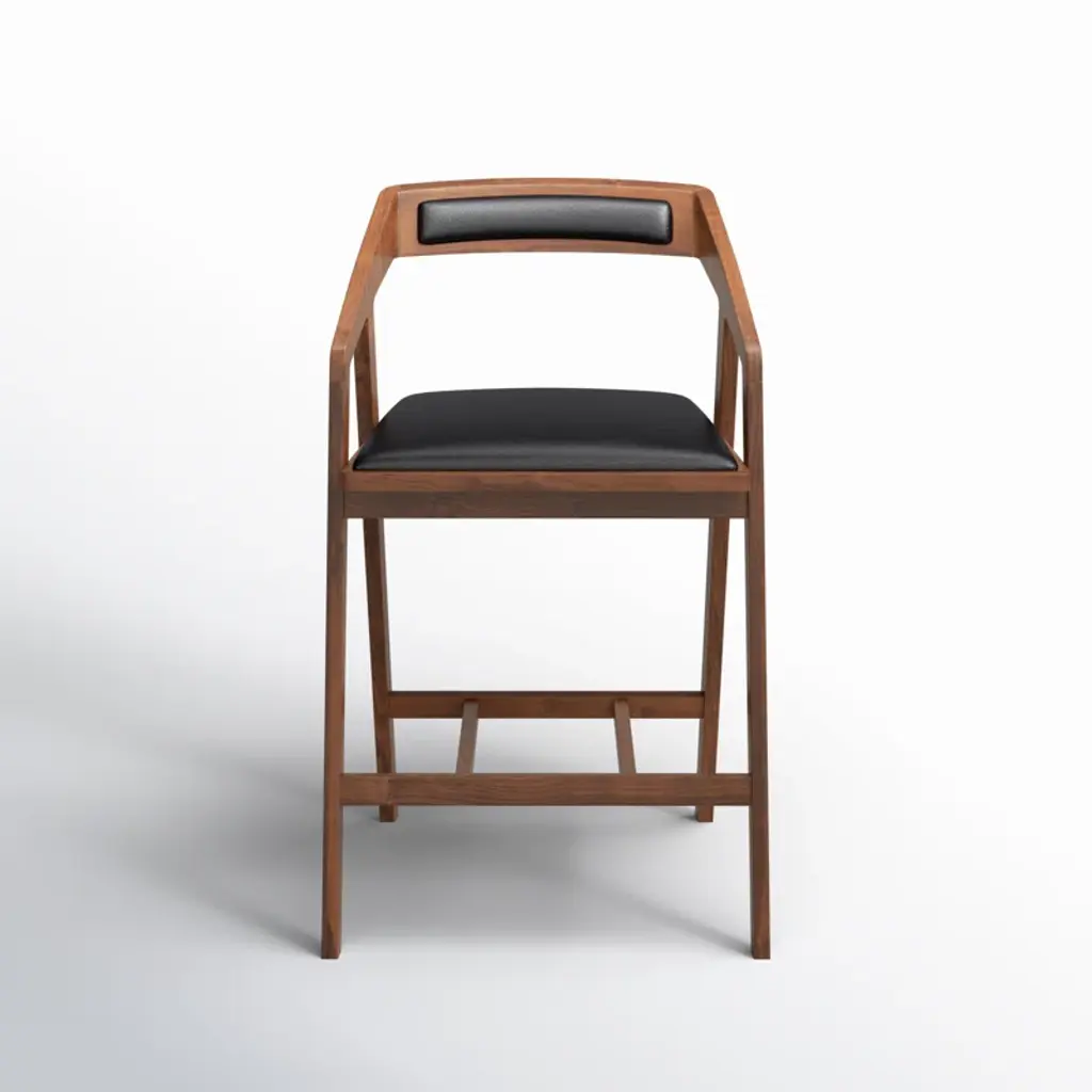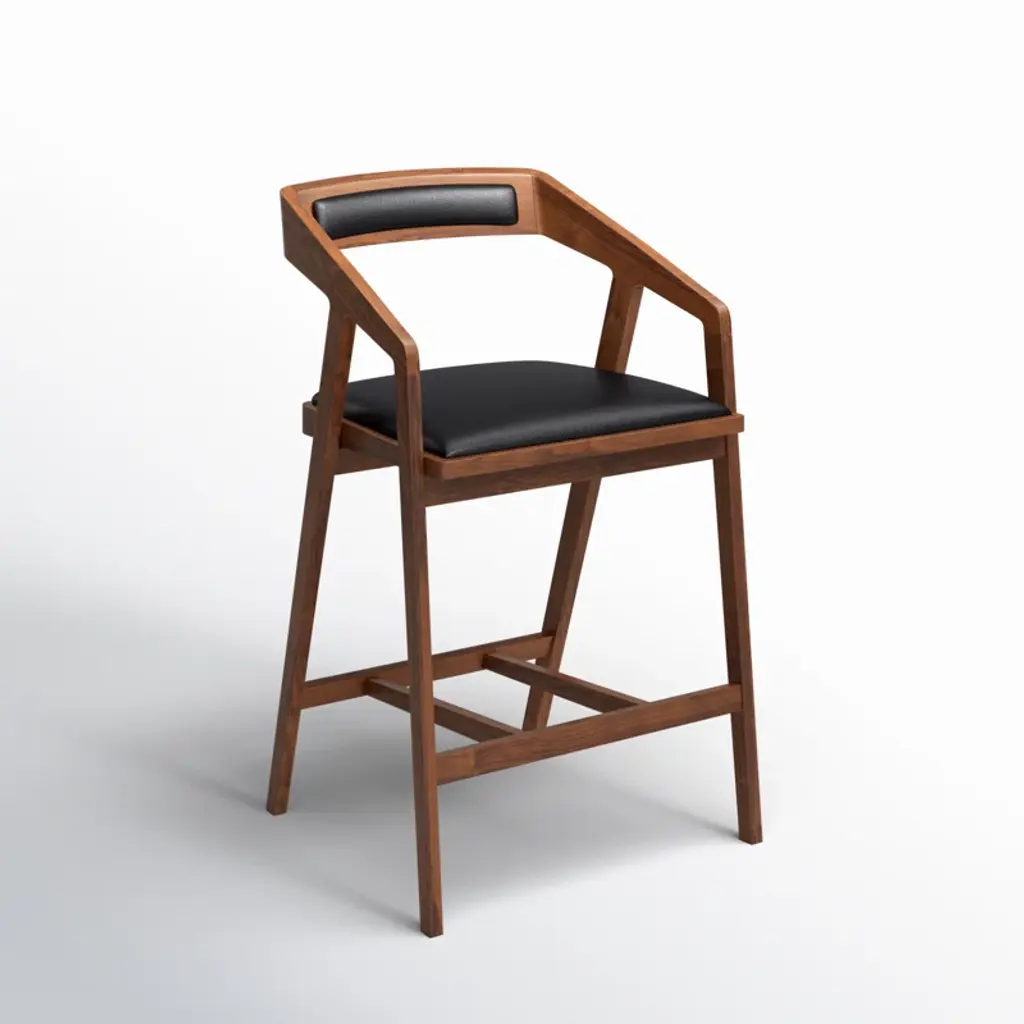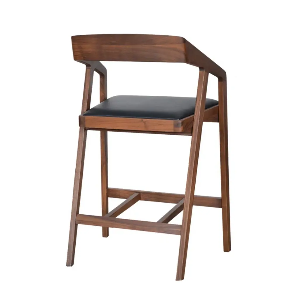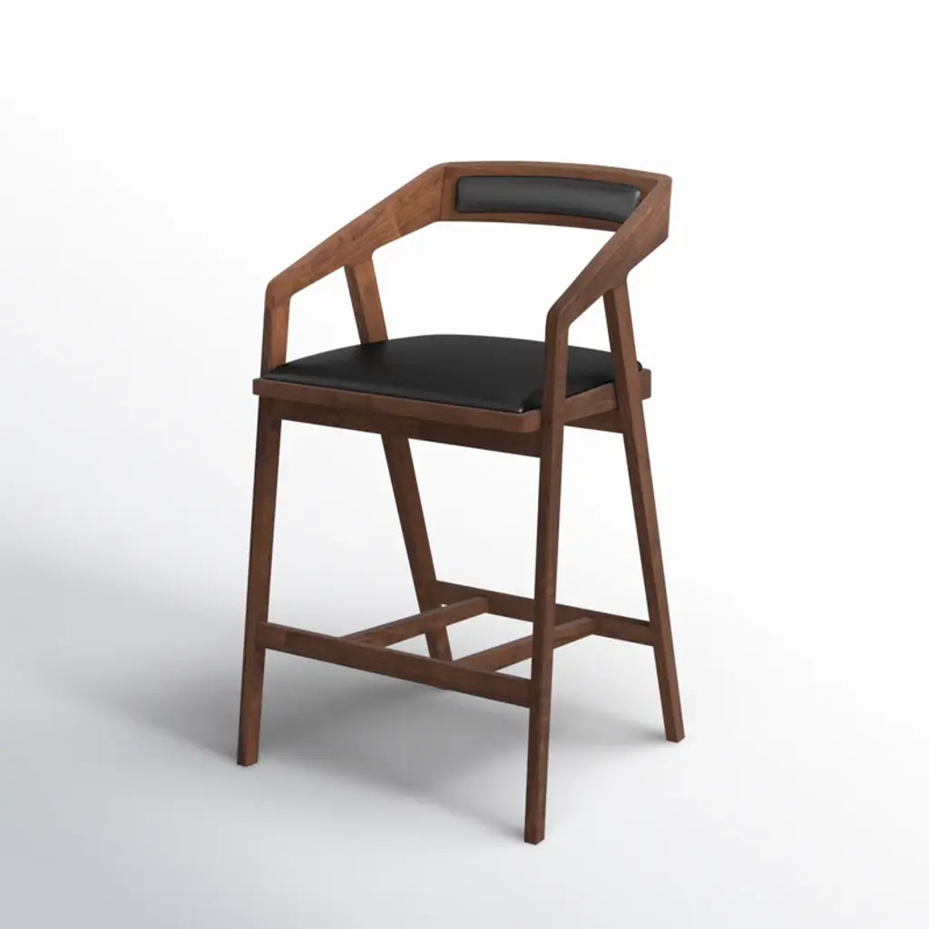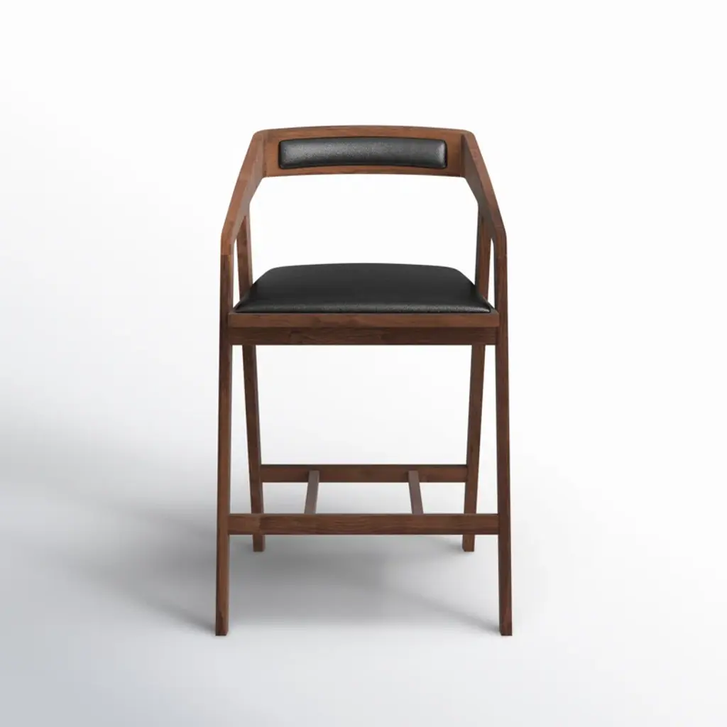 Built with walnut wood, this dining stool’s airy frame is enlivened by sharply angular arms + back legs. Padded upholstery and slatted footrest support you while you enjoy mid-century vibes with your evening drink. A low back keeps sightlines open, and plastic glides save floors from scratches.