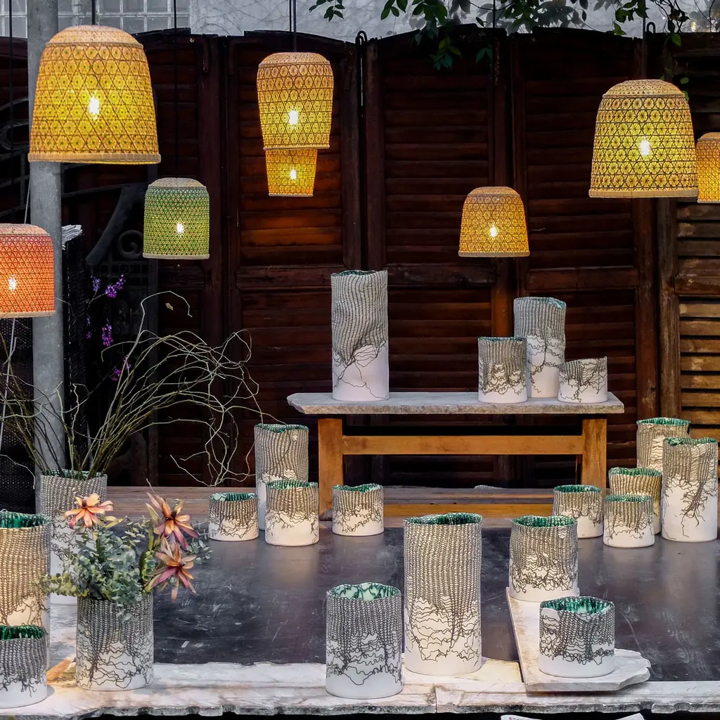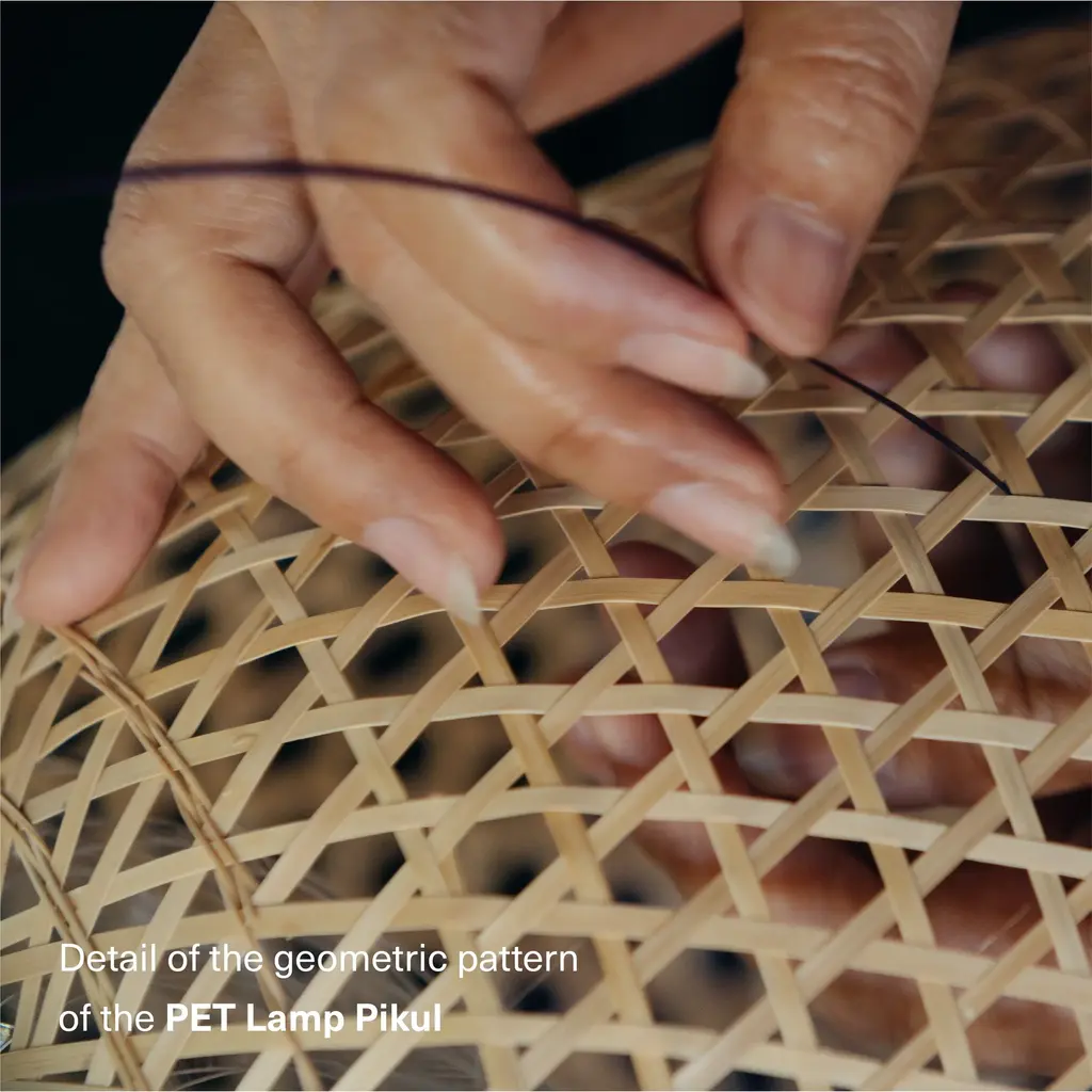 The images shown are for inspiration purposes only. After your purchase, a Goodee design representative will contact you via care@goodeeworld.com to guide you through the process of selecting your preferred lampshade and cable color combinations. Looking for one or several statement lampshades to give your space a warm and inviting feel? You’ll love the Pikul PET Lamp series by ACdO for its eye-catching geometric design, which fills the room with magic when the light is on. Created in collaboration with Thailand’s Traditional Bamboo Handicraft Center, a foundation supported by her Majesty Queen Sirikit, the Pikul is remarkable for its intricate weave pattern skilfully woven from fine strands of dyed bamboo and plastic strips. Requiring the skill of three craftspeople, each unique lamp is a testament to their creativity and mastery. Discover more about the artistry behind the Pikul collection.