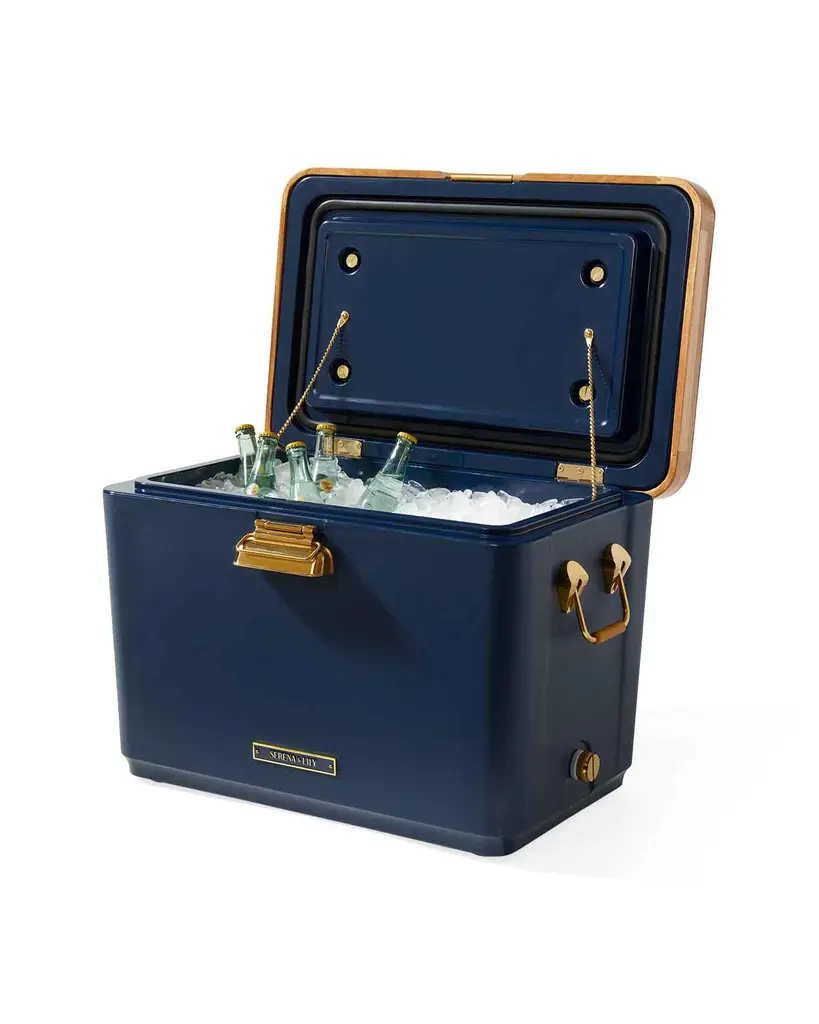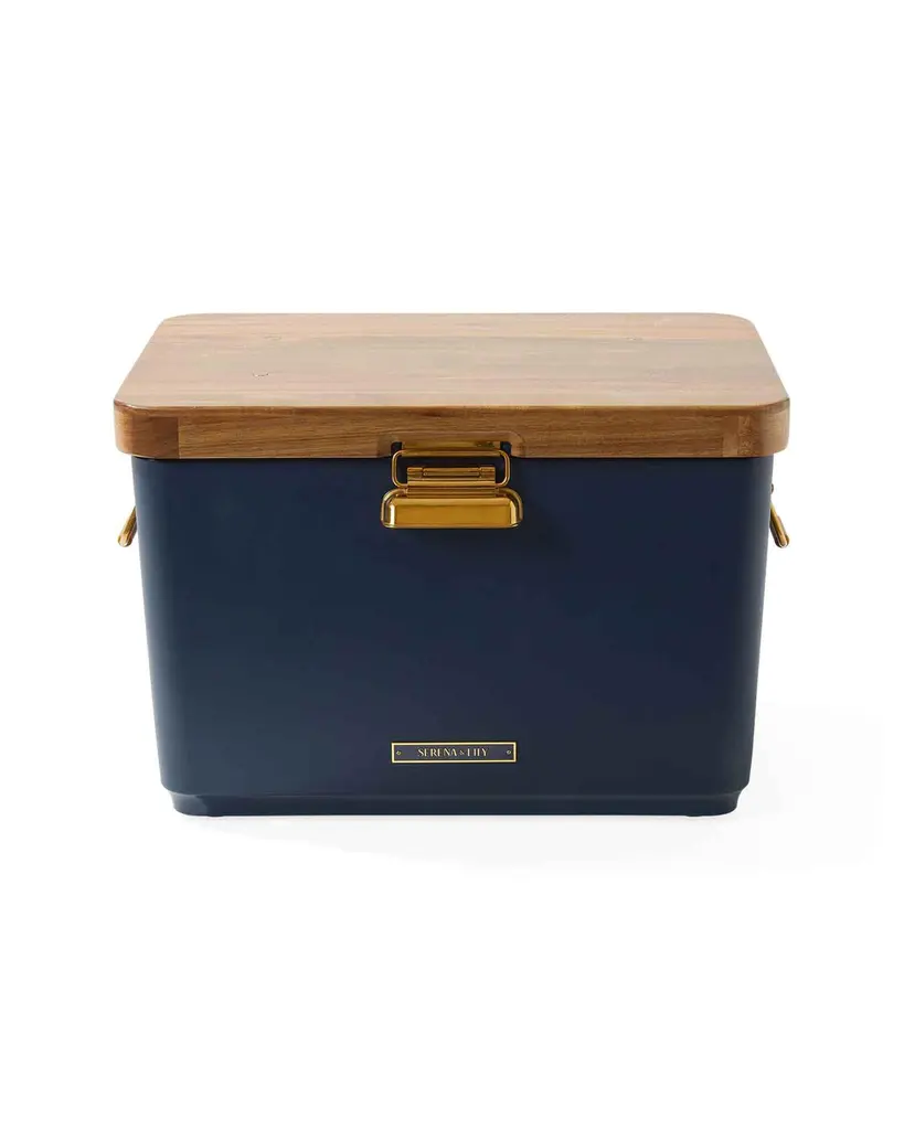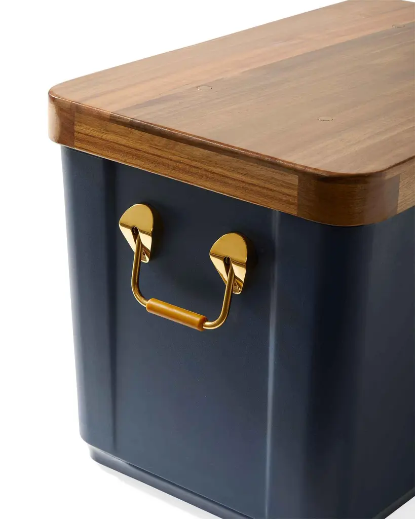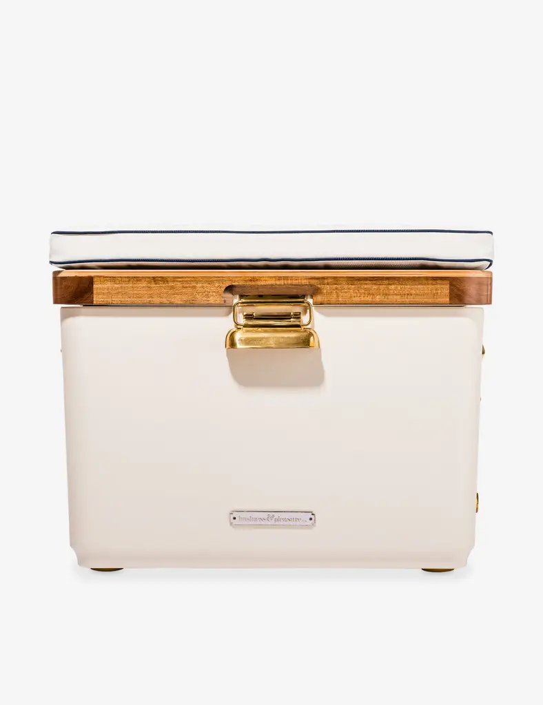Outdoor endeavors. Elevated design. From camping to days at the beach, pack this cooler with all that you need. Fitted with a gorgeous acacia wood lid, detachable cushion, and stainless steel handles.