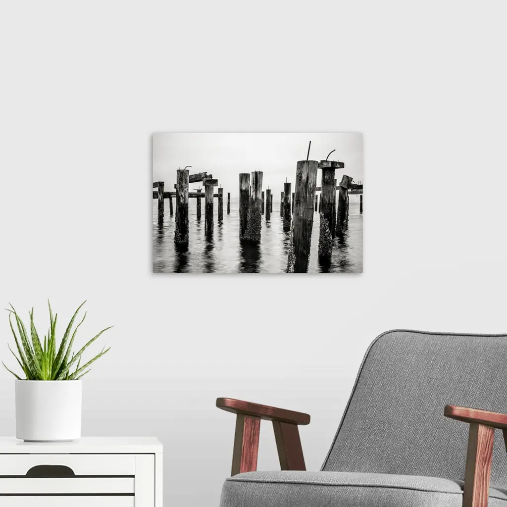 Old pilings on the Puget Sound along Ruston Way in Tacoma, Washington.