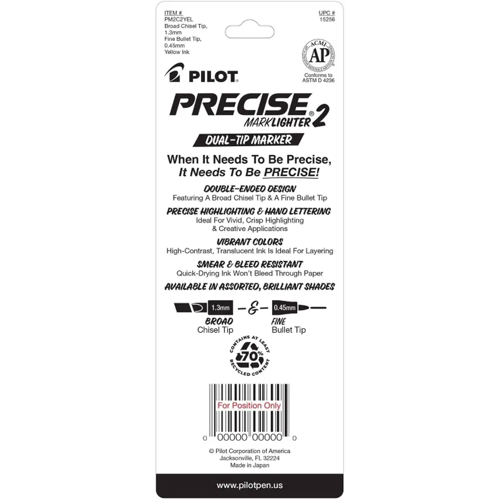 Pilot 2Pk Precise Marklighter2 Dual Tip Highlighter Yellow