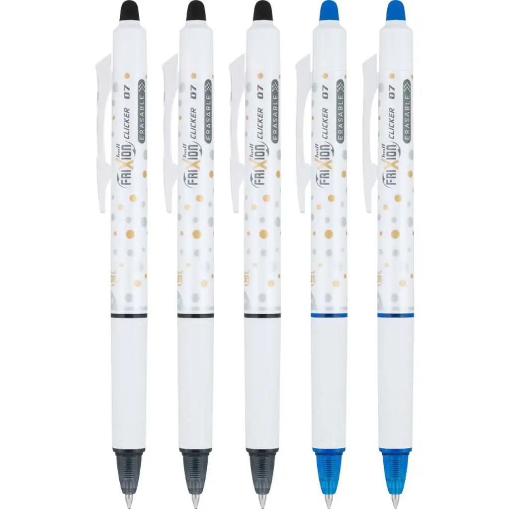 Pilot 5Pk Frixion Clicker Design Collection Dots Erasable Pen Fine Point 0.7mm Assorted Inks