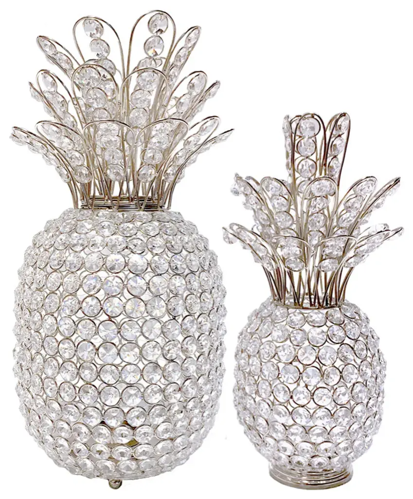 The Pina Medium Cristal Silver Pineapple is an Elegant Statement Piece on any Tabletop. The Many Sparkling Crystals Accentuate this Accessory. It''s Versatile, and the Glamorous Facets Displays Beautifully when the T-Lite Candle is Lit. It Creates a Shimmering Effect which Compliments any Decor.