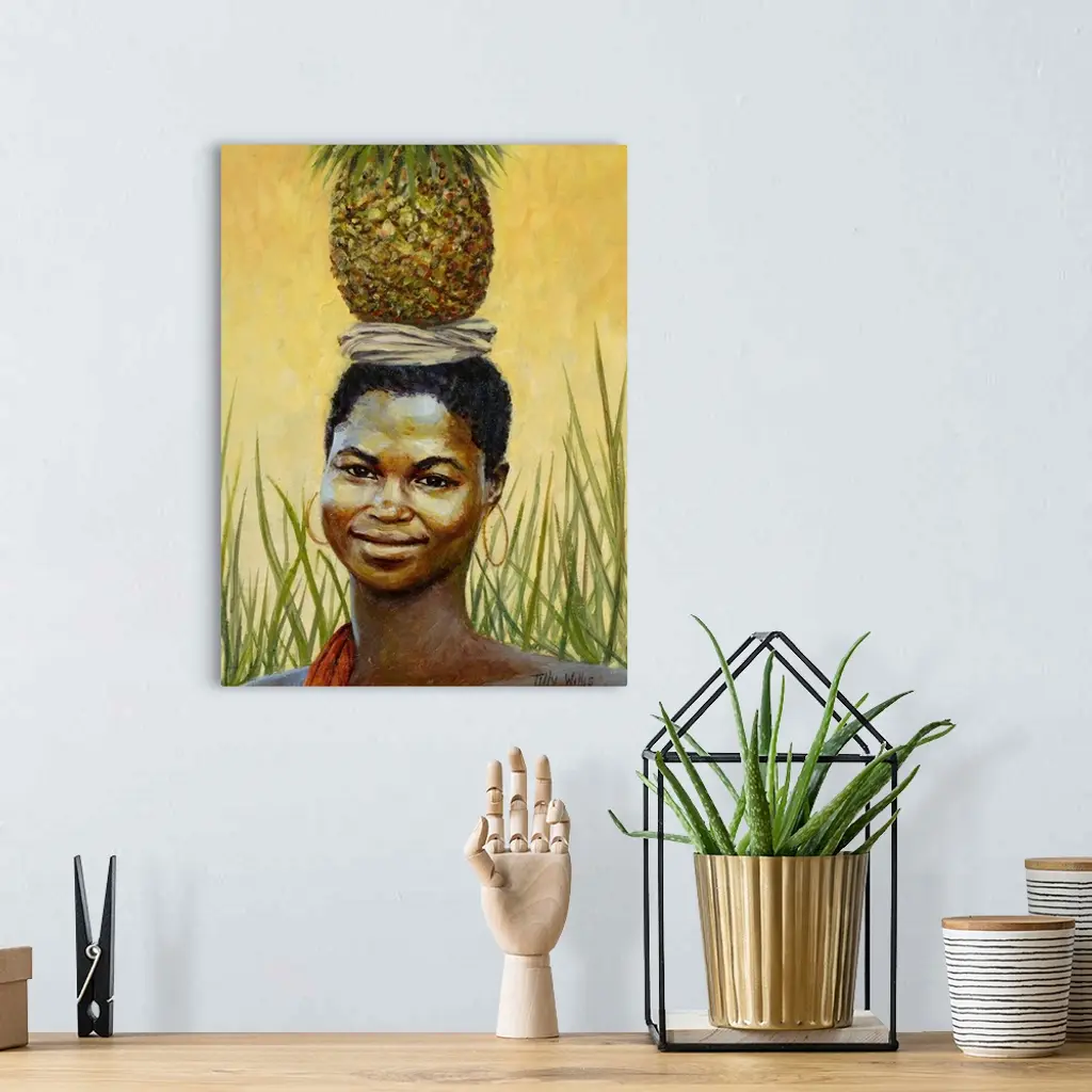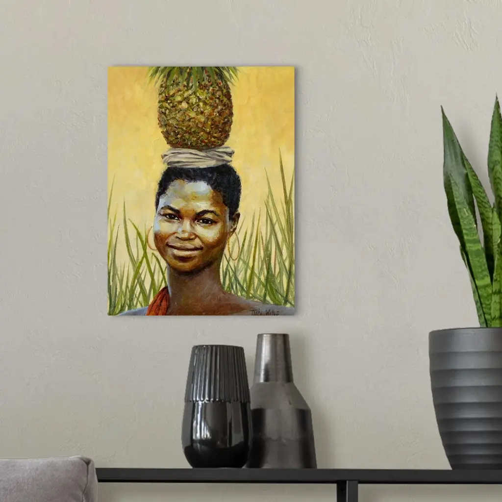 Find Framed Print, Poster, Canvas Art, and Art Print of female, African, black, portrait, carrying, fruit, head,