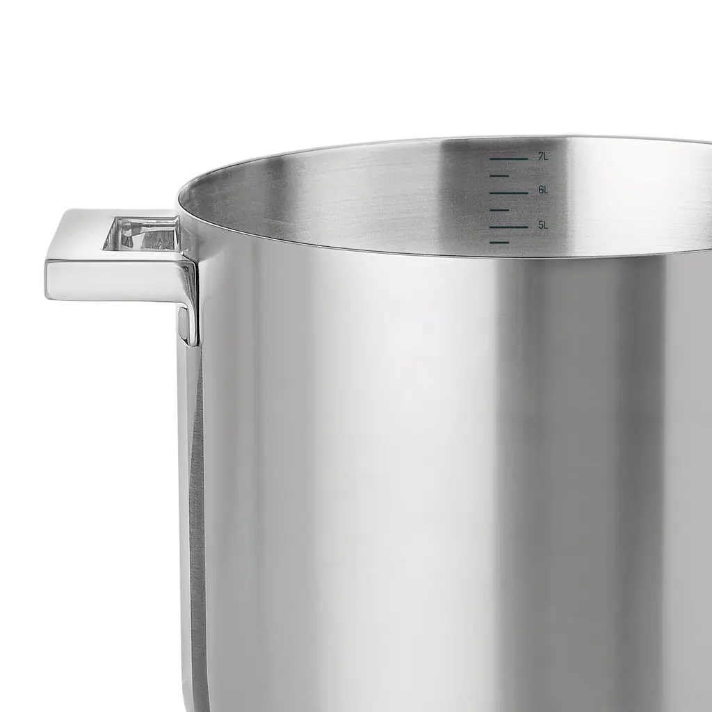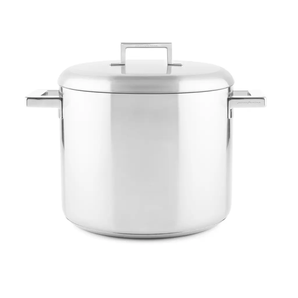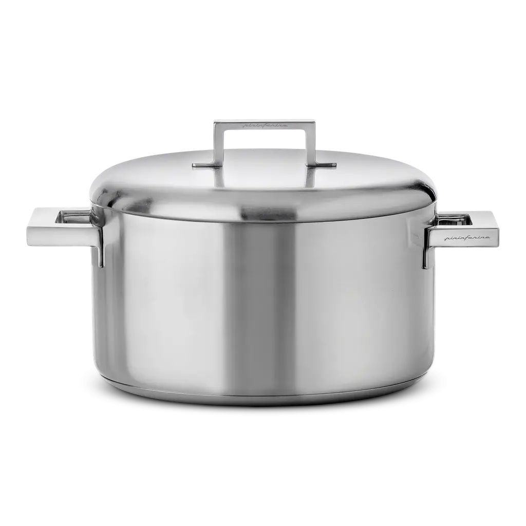 Fall in love with cooking all over again by choosing the pots and pans from the Pininfarina Stile collection. An elegant example of timeless Italian design, the range offers a stylish take on everyday kitchenware. The Stile Deep Pot features the line’s signature rounded forms and brushed stainless steel finish. At the top, the rounded lid mirrors the silhouette of the pot for a seamless look. Angular handles on the sides and lid enhance the clean design further while also providing a perfect grip. Designed to protect ceramic and induction hobs, the bottom has a rounded shape. Its extra-thick build ensures superior heat retention and even heat distribution. Made of stainless steel, this versatile deep pot is perfect for a wide range of dishes. Dishwasher-safe.
