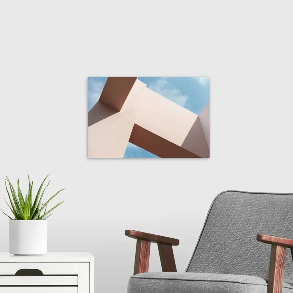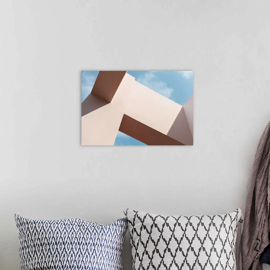 Pink Abstract Modern Architecture Fragment Under Blue Sky On A Sunny Day