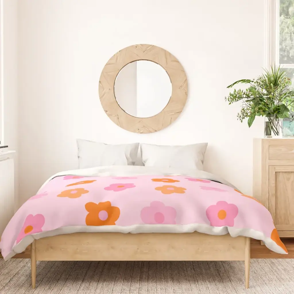 Pink And Orange Groovy Flowers Pattern Duvet Cover