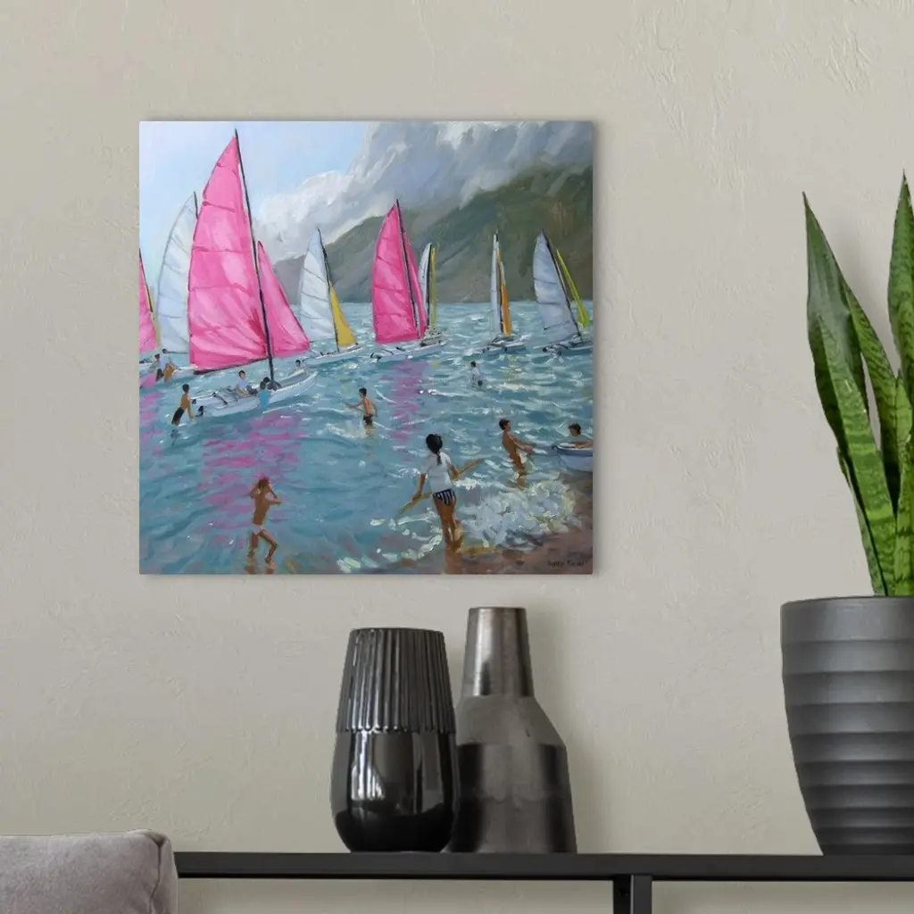 Pink and white sails, Lefkas, 2007, (originally oil on canvas) by Macara, Andrew