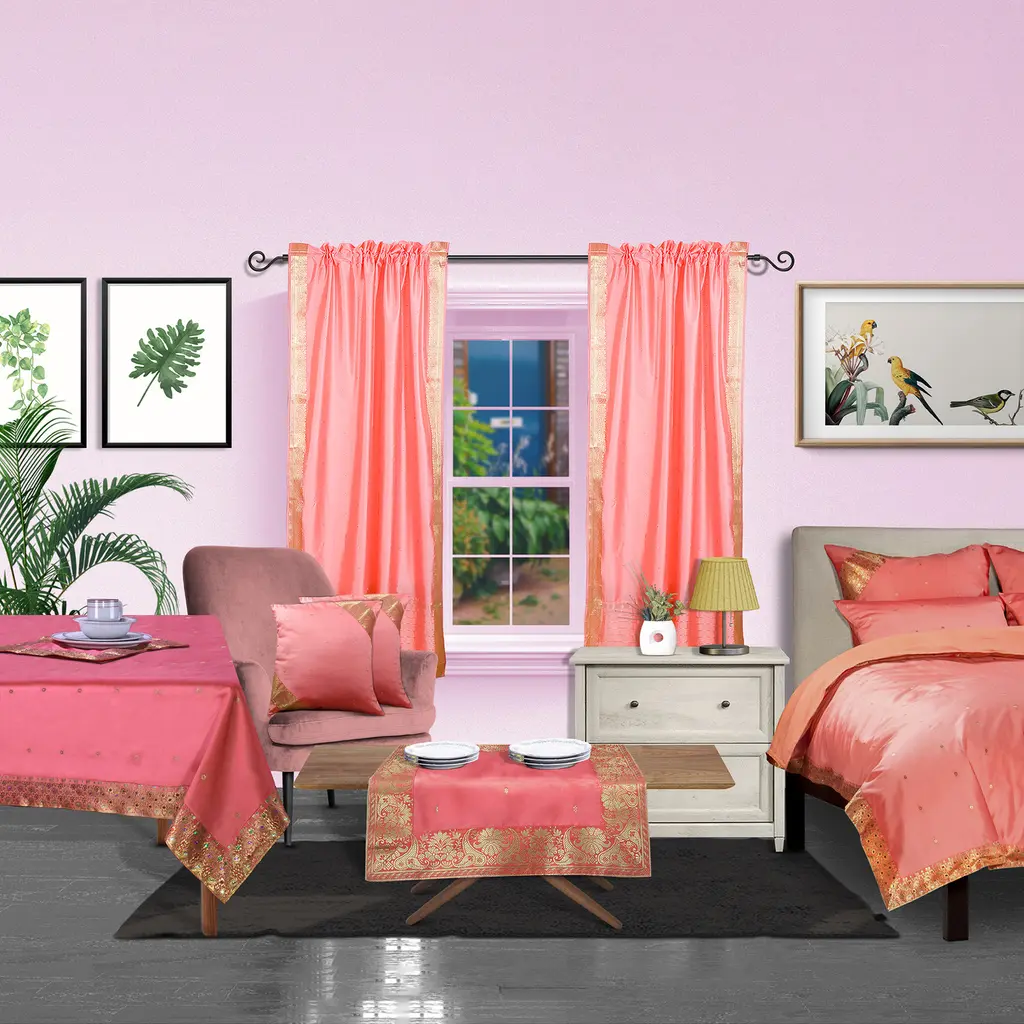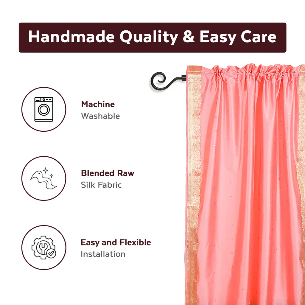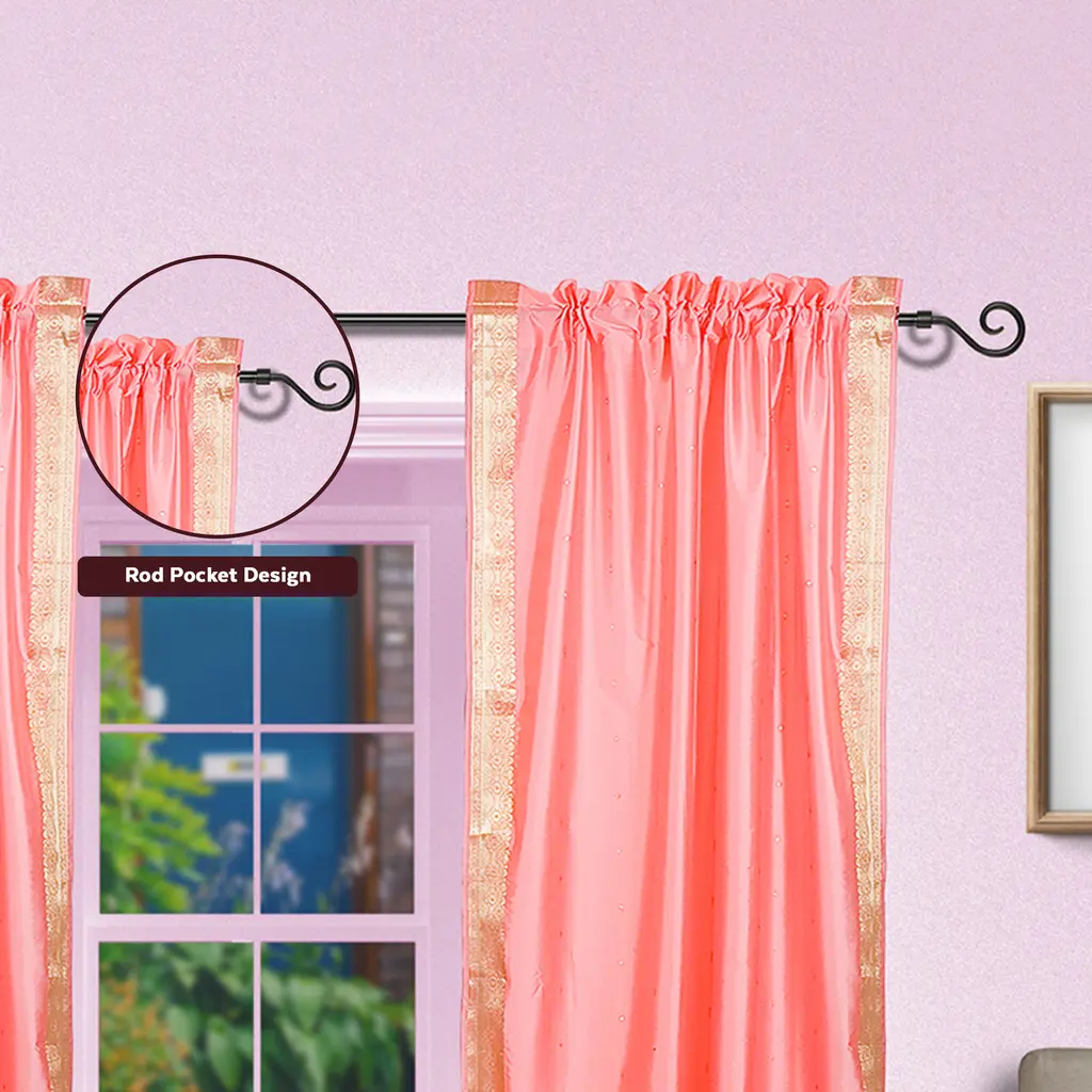 Pink Rod Pocket Sheer Sari Curtain / Drape / Panel - Pair
