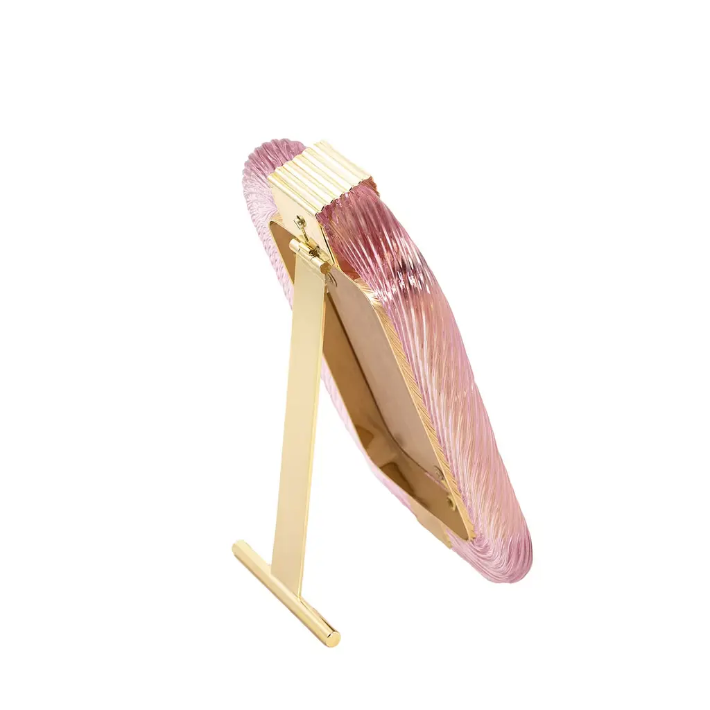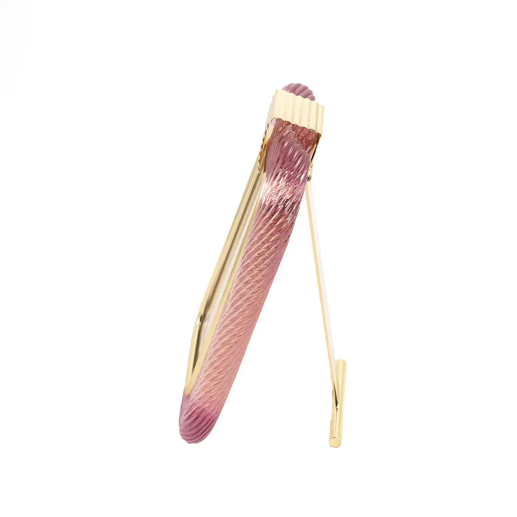 Pink Twisted Glass With Glossy Brass Structure Frame