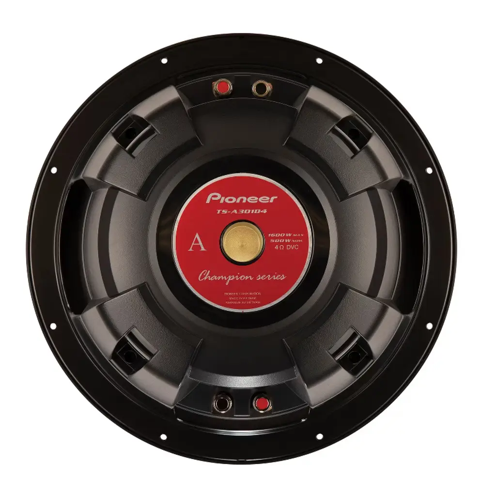 The Champion Series subwoofers have evolved from Pioneer’s award-winning “SPL Champion Edition” lineup, known for their deep and powerful bass production. The TS-A301D4 12 in. dual-voice coil component subwoofer features a large and powerful motor assembly for improved efficiency and sensitivity. The subwoofer baskets are optimized using a reinforced structure design for added strength and reduced vibration to deliver excellent sound quality. This 12 in. subwoofer has a continuous power of 500 watts with a maximum peak of 1,600 watts. It features an advanced 2-piece cone designed with a highly rigid and durable Honeycomb IMPP composite cone structure plus a rigid drive cone to deliver high output levels with reduced distortion. This speaker should be placed in an enclosure for best performance (enclosure not included).