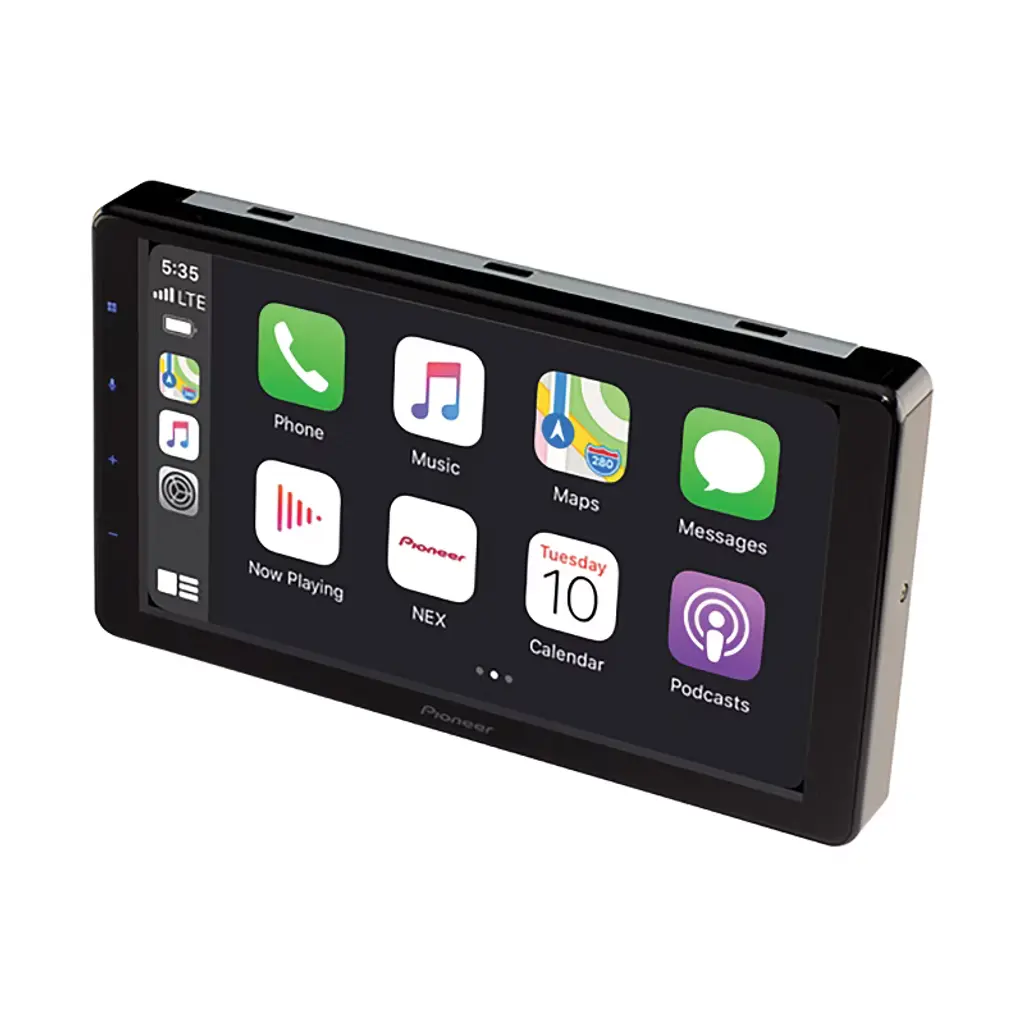 Pioneer’s Modular Solutions receivers are designed for applications, often newer vehicles, with limited depth behind the dash that prohibits the installation of a traditional 1 DIN or 2 DIN receiver. This installation flexibility is achieved by physically separating the LCD touchscreen display from the single-DIN hideaway chassis that contains the processor, memory, tuner, amplifier, and all input/output connections. This allows the sub-chassis to be mounted in a different location (may require RD-RGB150A or CD-RGB150E accessory, sold separately) or a different horizontal/vertical orientation within the vehicle. The DMH-WC6600NEX Modular Solutions digital multimedia receiver features a 9-in. capacitve touch screen LCD and a single-DIN separate installation chassis. Use your smartphone and the Pioneer CarAVAssist app to customize your receiver’s home screen, register your favorite sports teams to receiver real-time game updates, and easily perform OTA firmware updates. It also has Bluetooth, HD Radio, and is compatible with Apple CarPlay, Android Auto, and has Alexa built-in. It is also SiriusXM ready.
