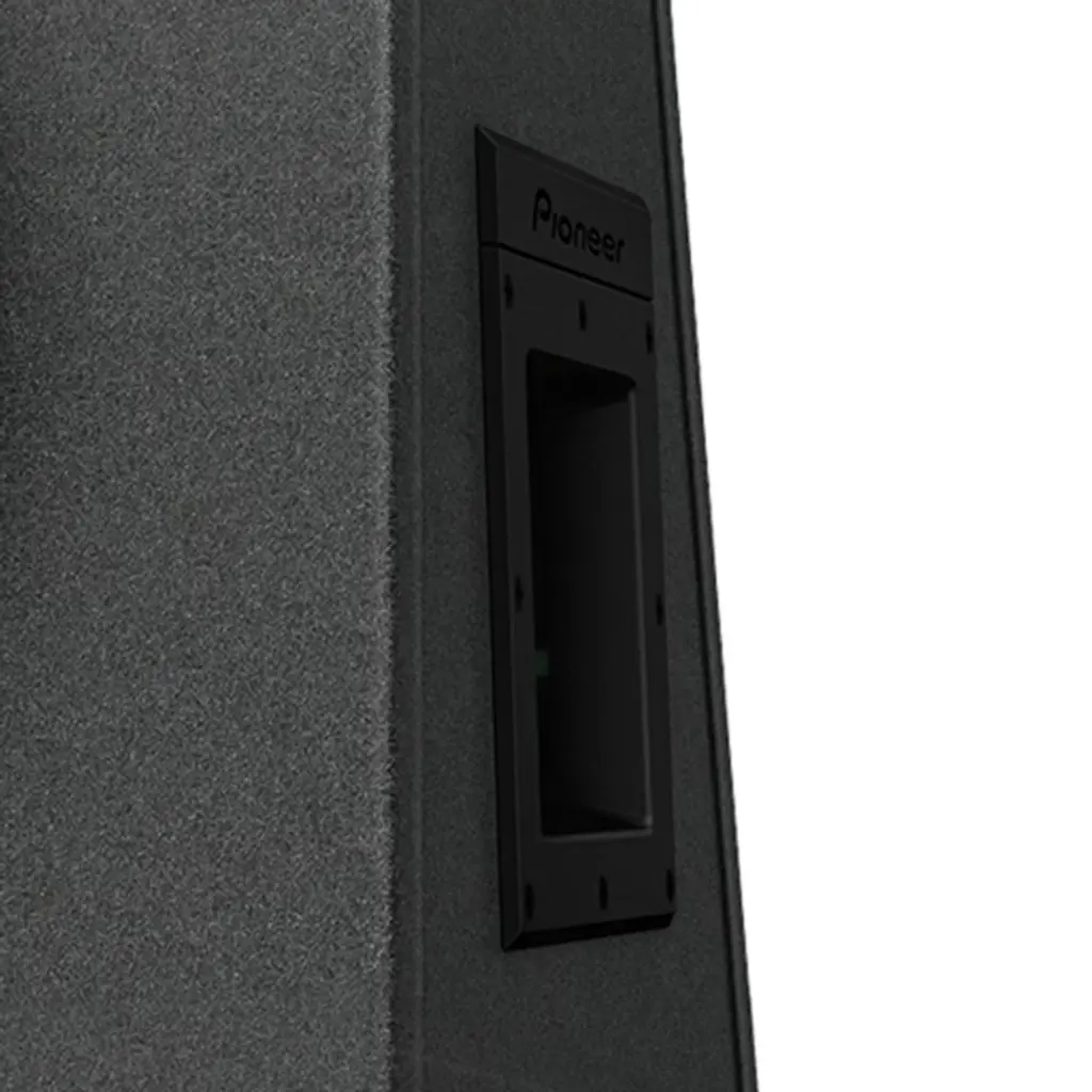 This Pioneer Sealed 12 in. 1,300-Watt Max Active Subwoofer with Built in Amp features an innovative trapezoid shape for high rigidity and reduction of internal standing waves while increasing installation flexibility. This 350-watt nominal amplified subwoofer can be installed freely in the cabin or under seats, and it can be repositioned with the subwoofer firing rear, front or upwards for optimal bass tuning! The built-in high-bandwidth, high-output and low-distortion Class D amp is ideal for small, sealed enclosures and is matched to a high-sensitivity 12 in. woofer. User-adjustable controls include an LPF, phase control and variable bass boost for enhanced control. To expand system flexibility and user control, the input gain can be adjusted using the included wired remote bass control knob or via the input gain control mounted on the enclosure side panel. The enclosure is fully carpeted, creating a nonslip, durable and scratch-resistant surface. Enjoy bass the way it was meant to be heard with this Pioneer powered amplified subwoofer!
