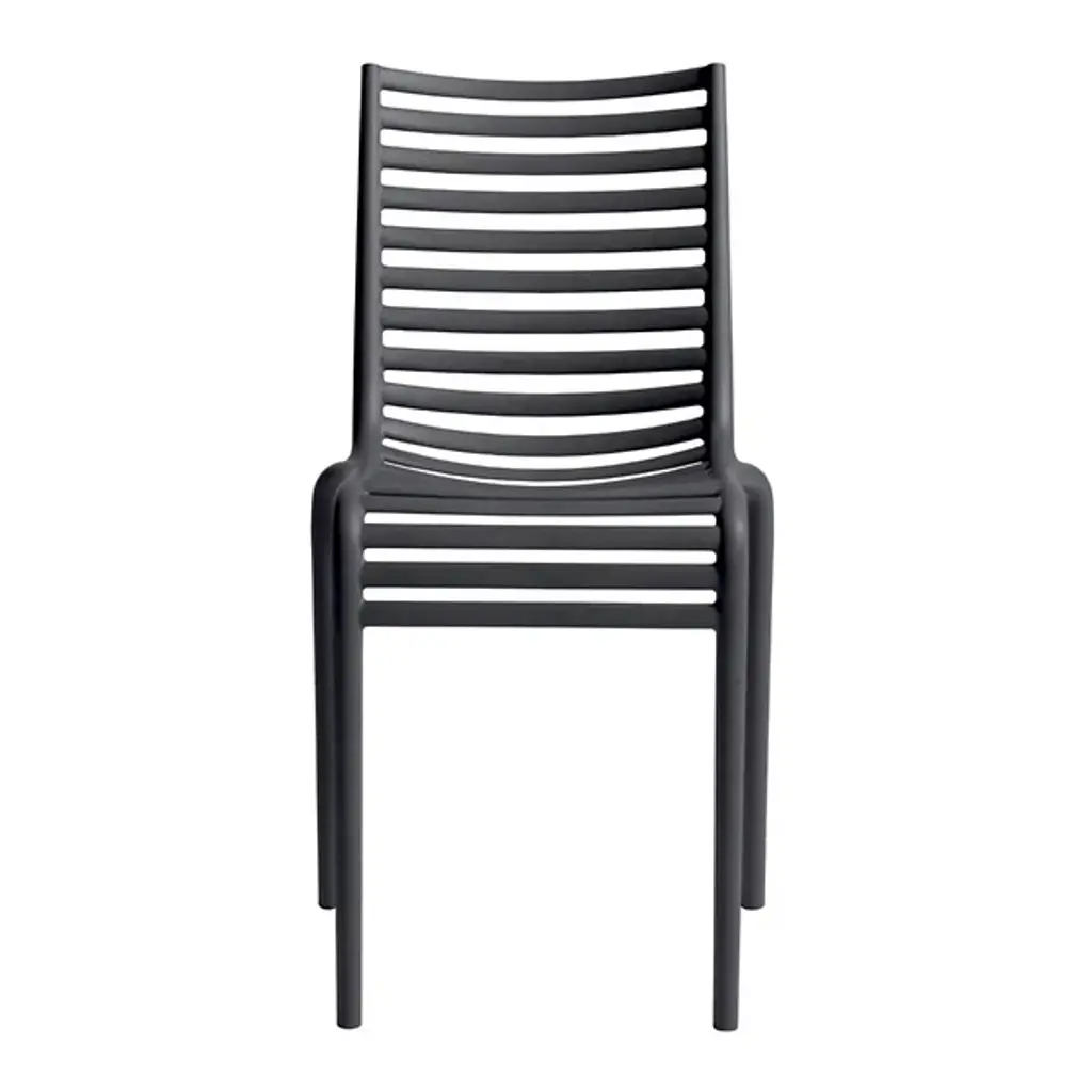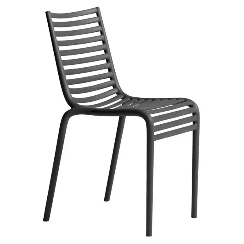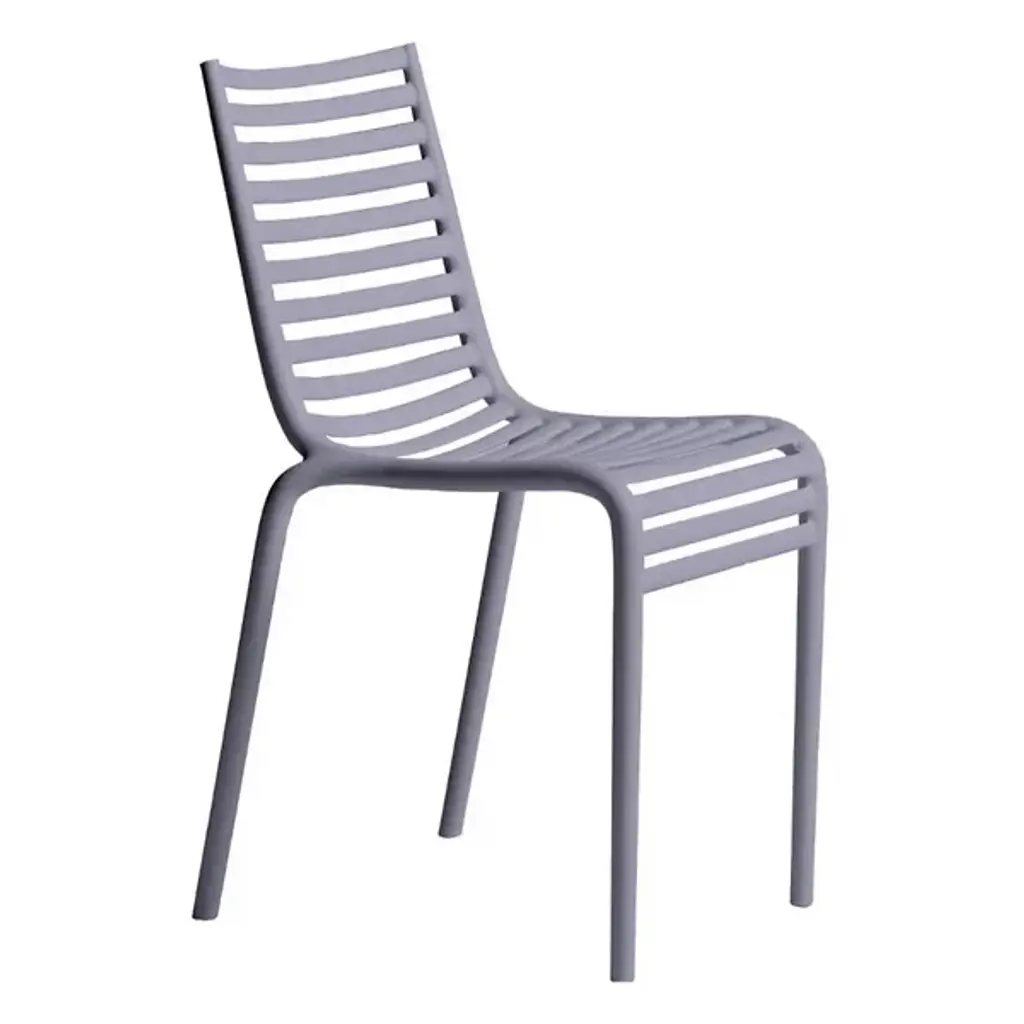 The Driade Pip-e Chair Set of 4 is a modern interpretation of the classic rail chair. Here, each chair is molded out of polypropylene. Both the material and the open horizontal slats make each chair especially useful for reliable long-term outdoor use. The molded plastic is strong yet lightweight, and the slats allow any rainwater to flow through. (Or you can stack them and get them out of the rain altogether.)