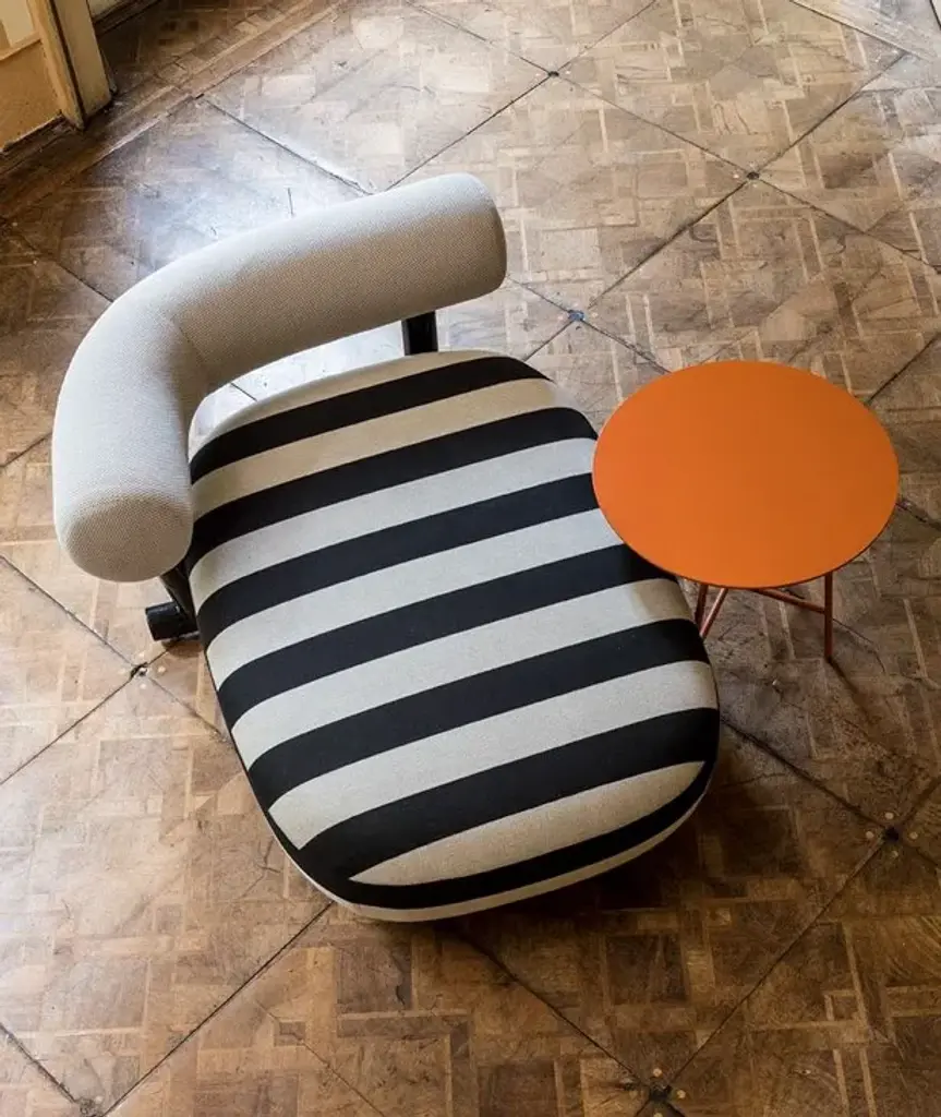 Pipe is a seat with stress-resistant flame-retardant polyurethane in varied densities and polyester fiber on hardwood frame. Back is injected flame-retardant polyurethane foam and polyester fiber. External backrest supports and legs are tubular steel with chrome finish or powder coat; transparent PVC glides. Available in leather or fabric. Pipe collection covers are not removable.