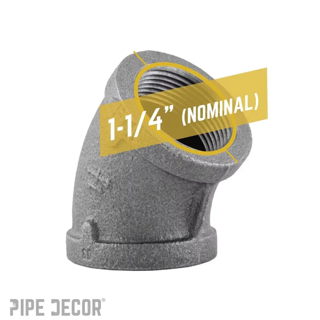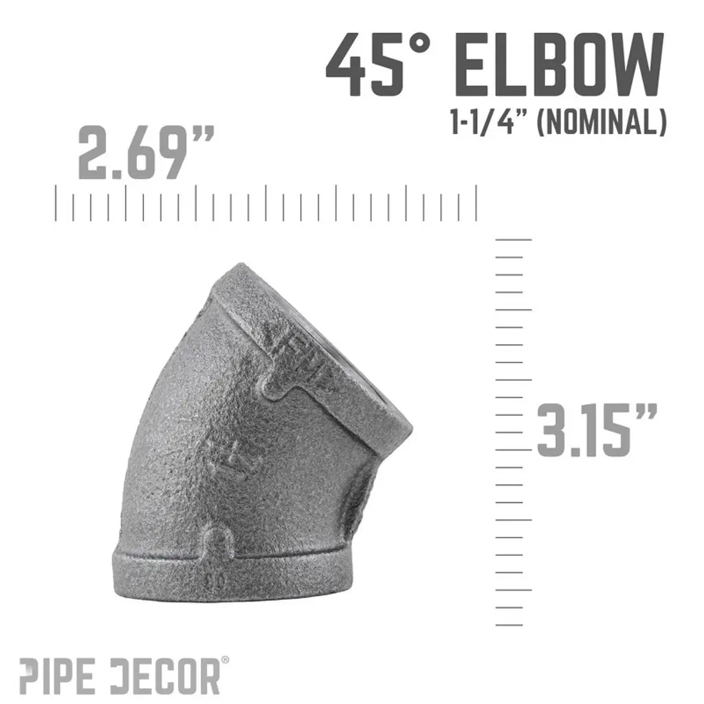 Pipe Decor 1 1/4 In. Black 45 Degree Elbow