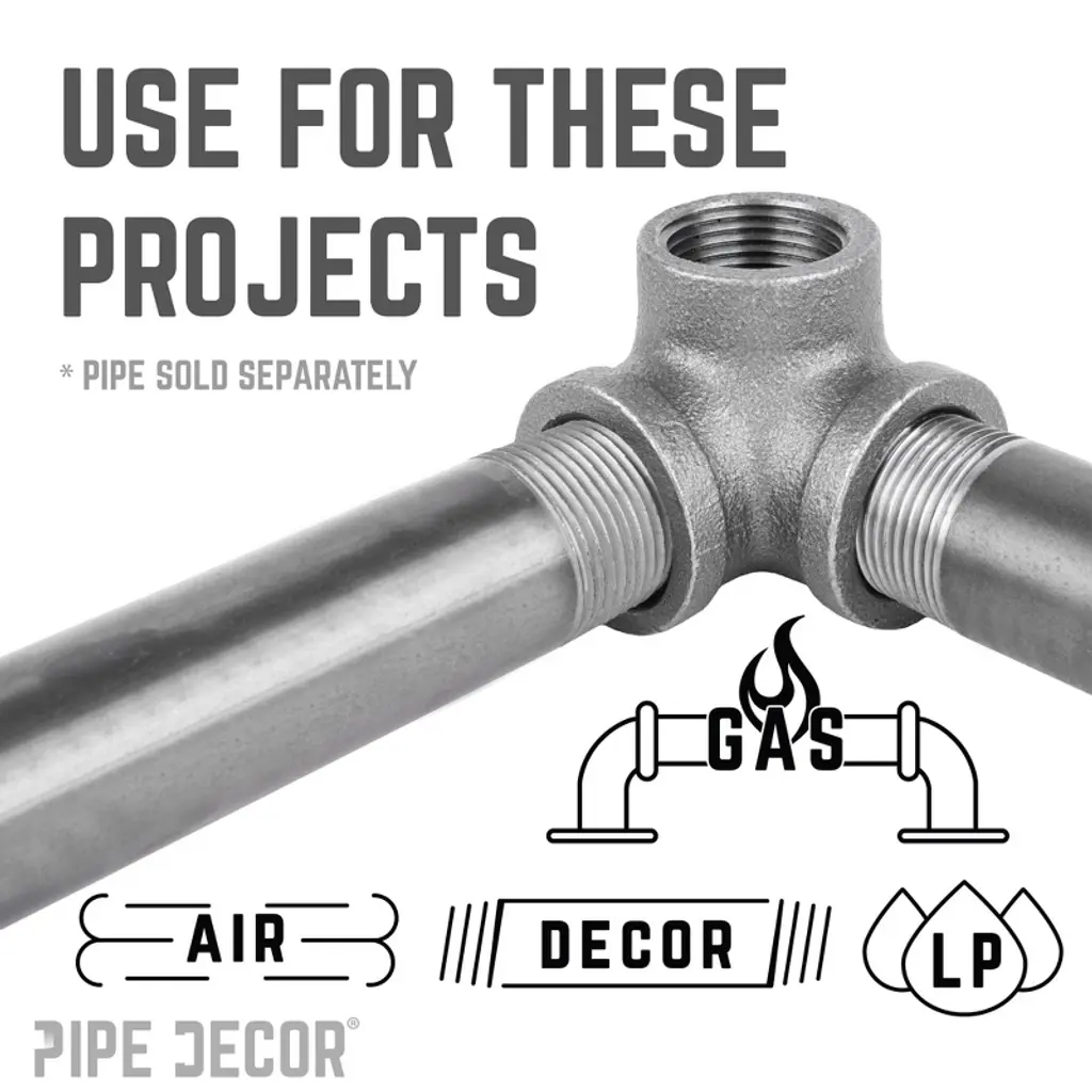 SIDE OUTLET ELBOW: Elbows with more pipe. An additional outlet was added to add more customizability to your projects. AUTHENTIC INDUSTRIAL PIPE FITTINGS: These are genuine industrial pipe fittings that will stand the test of time. You will know Pipe Décor parts and accessories when you hold them. Beauty and beast. Strength and style. This is real industrial pipe for your decoration and designs. Accept no substitutes. Extra pieces and accessories are available for your custom fixture projects and expansions. Plug and play as desired. CREATE CUSTOM PIPE FIXTURES AND FURNISHINGS: Create a one of a kind shelf, table, lamp, or a piece of art that perfectly fits your space. CLEANING AND SEALING: Since these are unfinished cast iron components, we highly recommend that you clean and seal each piece to ensure that they stay rust-free. Each fitting is coated in a light black grease that will rub off with use. Your hands may get a little dirty, but that is the price of high-quality industrial pipe fittings. WE ARE HERE TO HELP: Please reach out to us if you have any questions or issues of any kind. We stand by our products and are committed to our customers. We want you to be satisfied with your purchase and hope that you share your unique creations with us and your friends.
