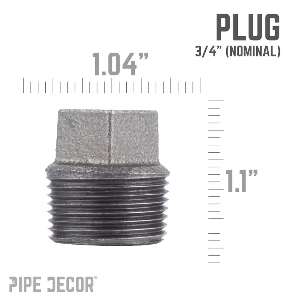 Give your DIY projects a polished, finished look with PIPE DECOR iron plugs. Perfect for sealing unused threads on hooks, shelves, or other pipe creations, these authentic fittings are crafted from durable, industrial-grade malleable iron and built to stand the test of time. You’ll know genuine PIPE DECOR parts the moment you hold them—beauty and beast, strength and style combined. These real industrial fittings are designed for your decorations and designs, with extra pieces and accessories available for custom projects and expansions, allowing you to plug and play as desired. Our iron fittings complement a wide range of aesthetics, including steampunk lighting, industrial, factory, French country farmhouse, vintage, retro, reclamation, DIY customized, modern, and more. Each plug features IPS threads for compatibility with other project materials such as lamp parts, valves, and additional PIPE DECOR components. We recommend cleaning and sealing each fitting before use. All pieces are fully compatible with any pipes, fittings, and PIPE DECOR furniture kits of the same diameter.