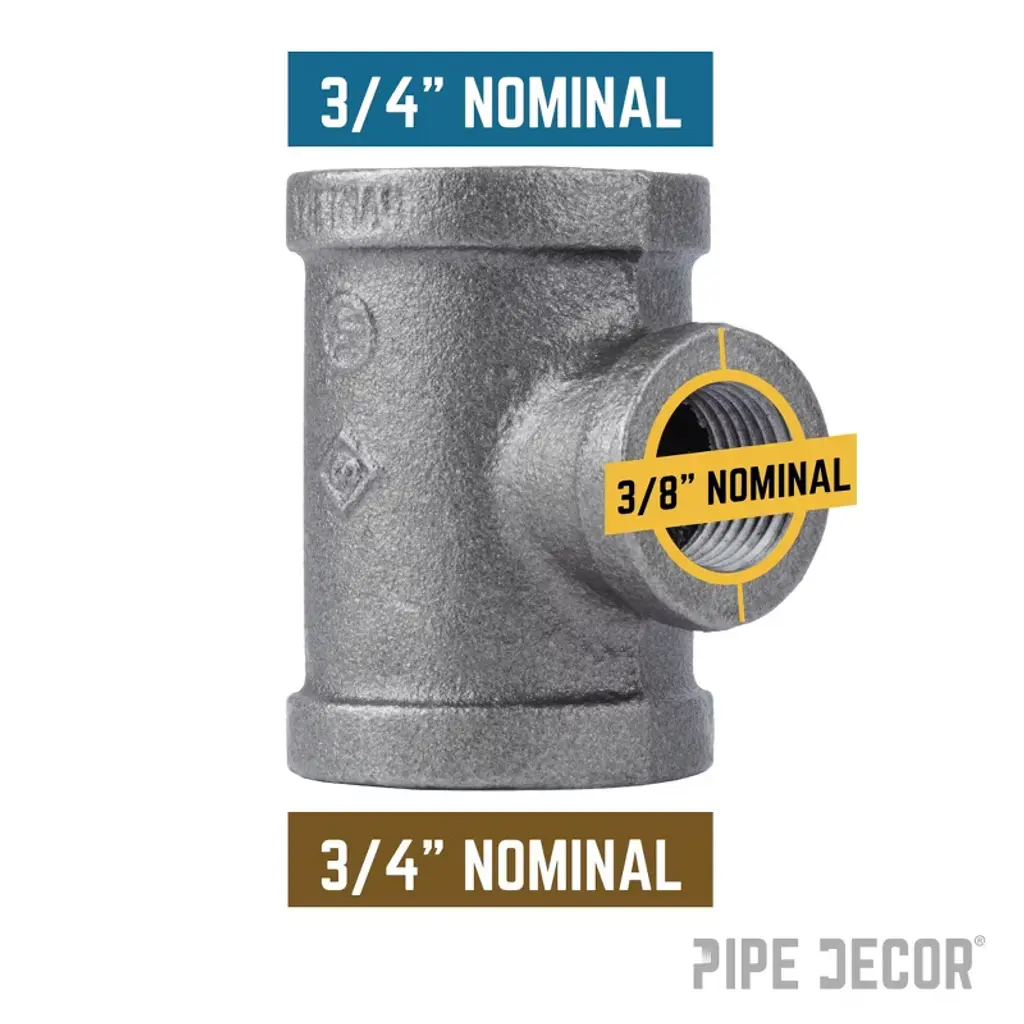 Pipe Decor 3/4 In. X 3/4 In. X 3/8 In. Black Reducing Tee