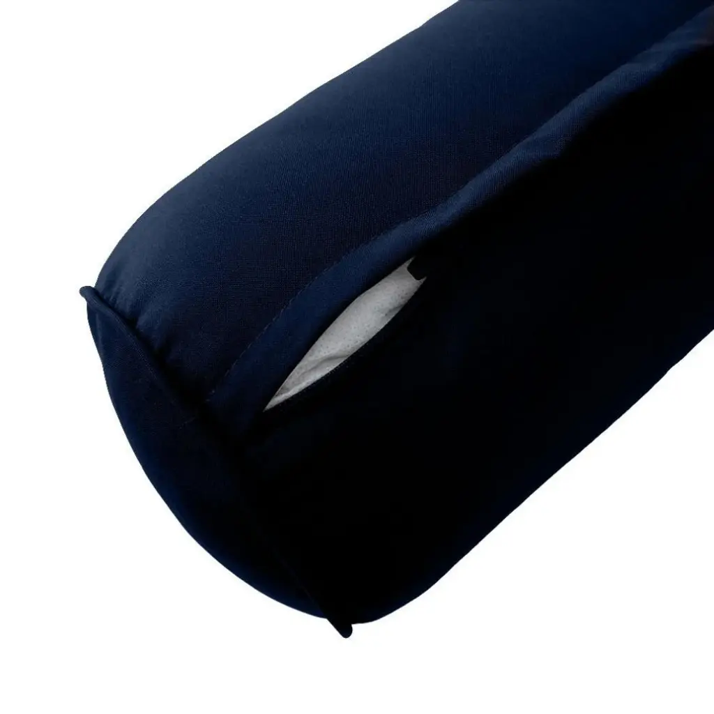 • Medium Pipe Trim Bolster Pillow Cushion Insert & Slip Cover• Cover Color: AD-101• Edge Trim: Pipe Trim (same color)• Dimension: - Before being opened, the Bolster Insert''s dimension is: 24" (A) x 6" (B)- After being opened, the Bolster Insert''s dimension is: 26" (A) x 8" (B) - Bolster Cover: 24" (A) x 6" (B)• The insert will fit precisely inside the bolster COVER size 24" x 6" when it is stuffed inside. Because To ensure a tight, secure fit, the insert needs to be slightly larger than the cover, the insert needs to be slightly larger than the cover• • Bolster Pillow Insert: 1000 Gram of Fiberfill and Sheet Polyester• 3 Layers: Polyester Fiberfill, Polyester Fiber-sheet and Dacron Wrap• Packaging: Vacuum Packed• Fabric: 230 Gram Polyester Upholstery• Hidden Zipper• Water Repellent• • • NOT WATERPROOF• • • Tips: Please cover or store cushion pillow in rainy season• Cleaning: Soap clean and rinse off with water hose. Outdoor durable!• Quantity: 1