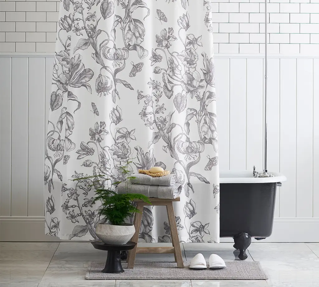 A simple palette highlights the details of our in-house designer’s hand-painted flowers, lending the perfect amount of fantasy to the botanical print.