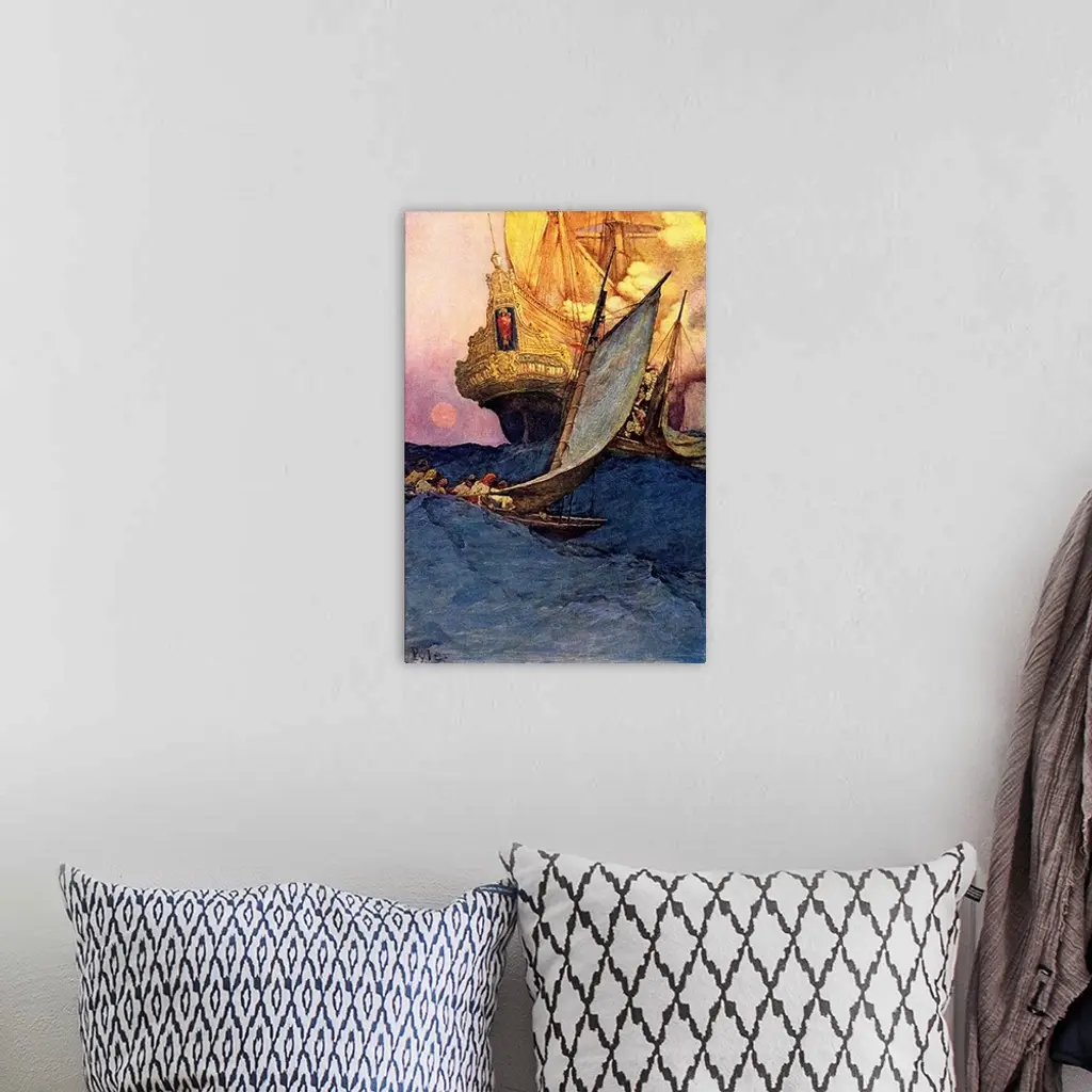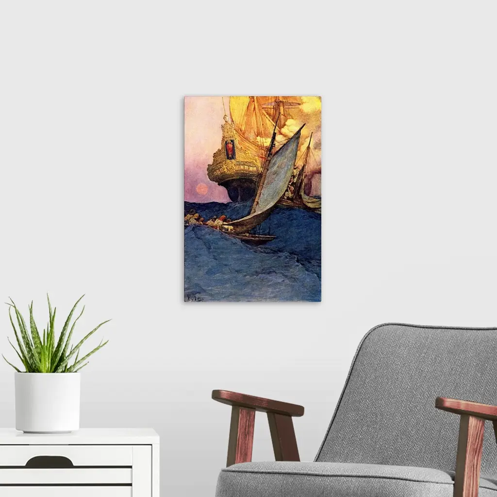 Pirate Ship Attacking Spanish Galleon In West Indies Illustration By Howard Pyle