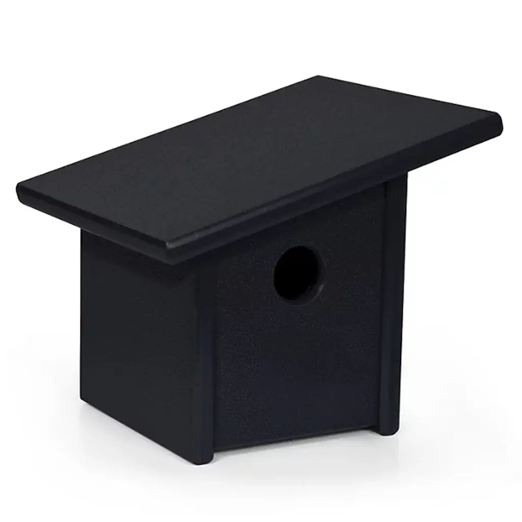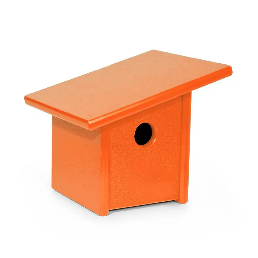 Designed by humans with birds in mind. The simple architectural design of the Loll Designs Pitch Birdhouse includes a sharply pitched roof and sleek living quarters. The entire structure slides on and off a fixed mounting plate for easy cleaning. Available in a range of colors of recycled HDPE (mostly from recycled milk jugs).