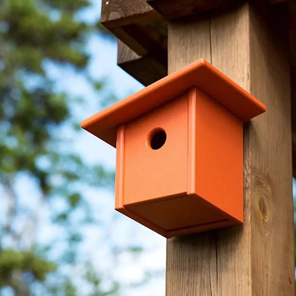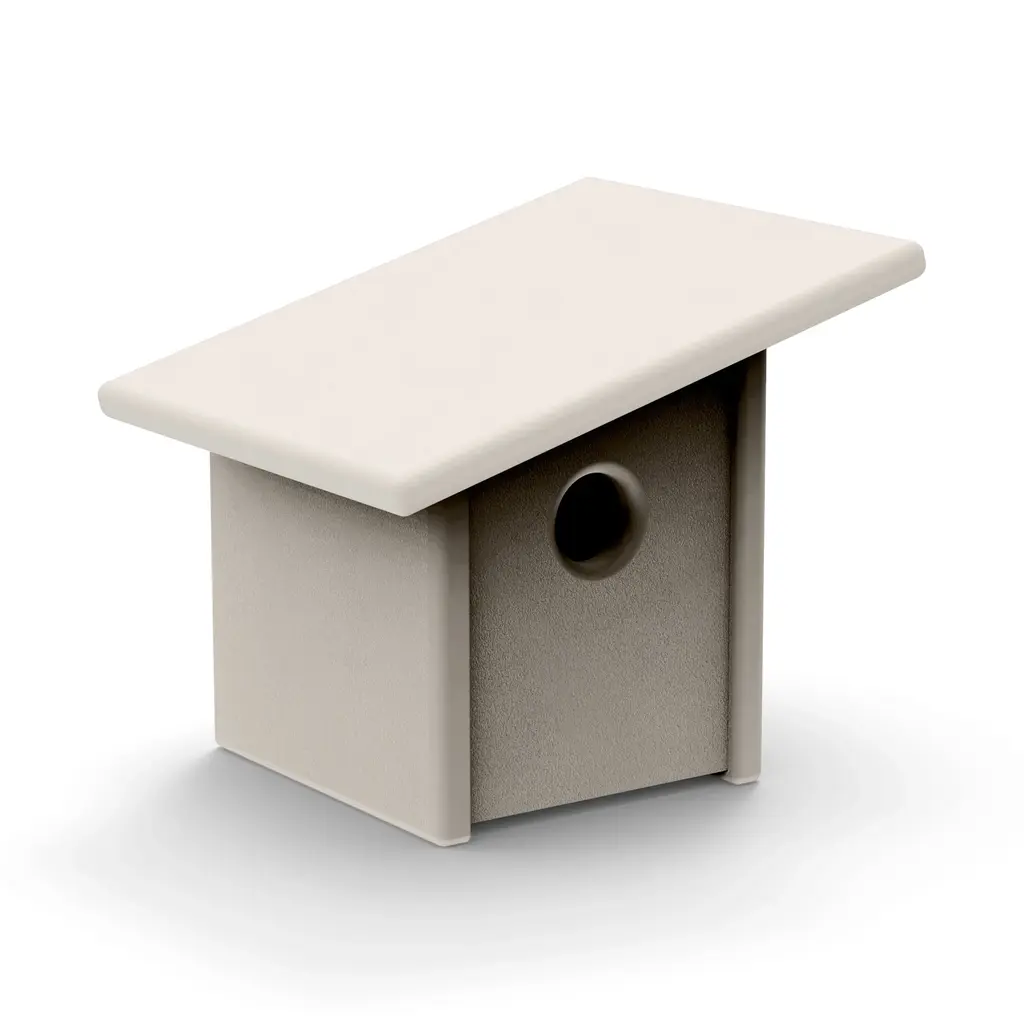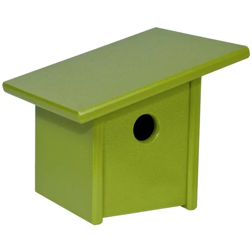 Designed by humans with birds in mind. The simple architectural design of the Loll Designs Pitch Birdhouse includes a sharply pitched roof and sleek living quarters. The entire structure slides on and off a fixed mounting plate for easy cleaning. Available in a range of colors of recycled HDPE (mostly from recycled milk jugs).
