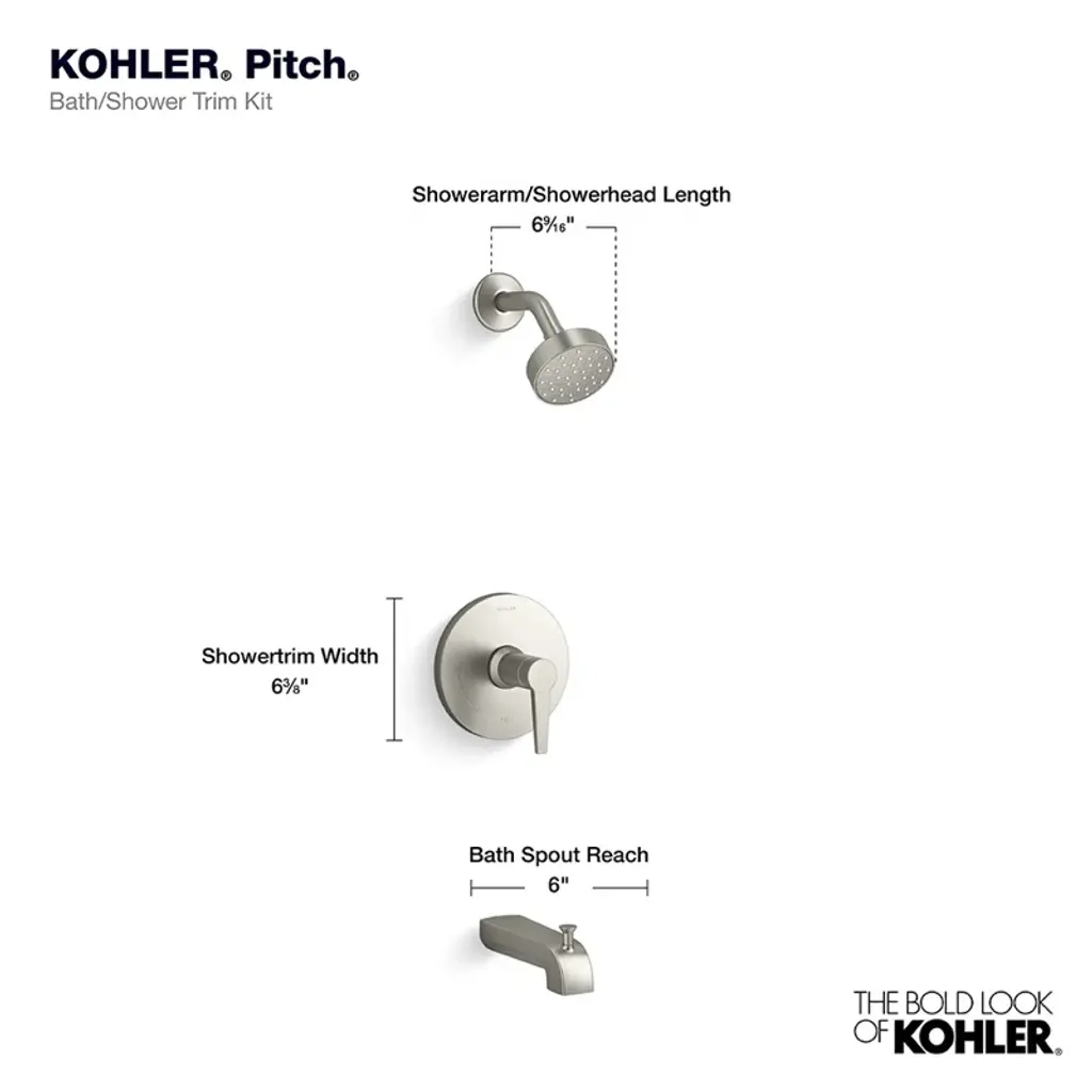 Pitch showering components feature a sleek, simple design that pairs beautifully with the full range of KOHLER contemporary faucet collections. This bath and shower trim kit includes a showerhead with Katalyst air-induction spray. Katalyst delivers a powerful, voluptuous spray that clings to the body with larger, fuller water drops. Complete this bath and shower trim with a Rite-Temp valve.