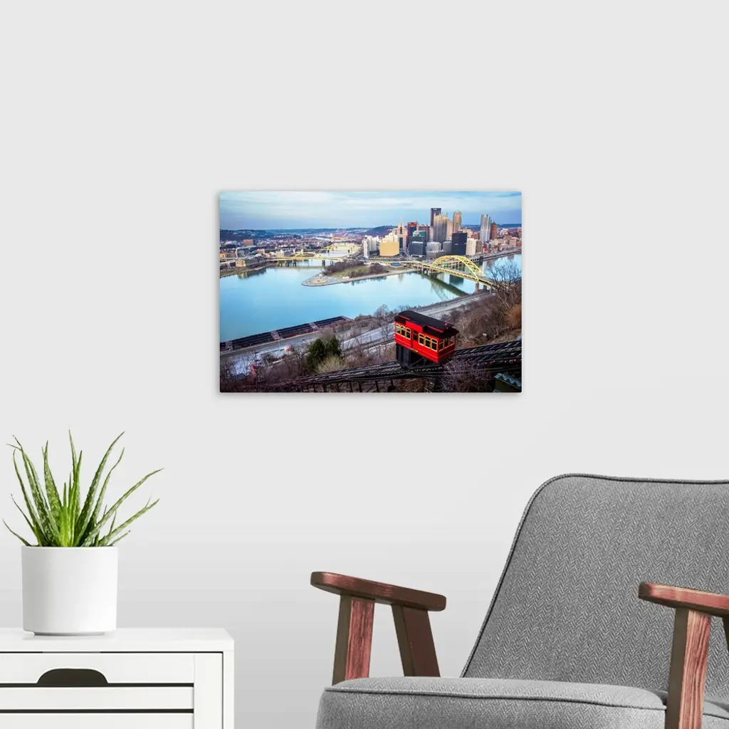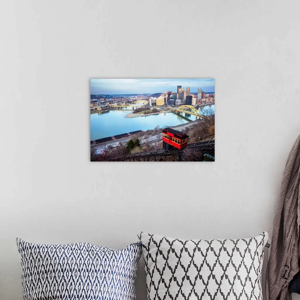 View of the downtown Pittsburgh, where the Ohio River, Monongahela River and Allegheny River meet. The forks of the Ohio.