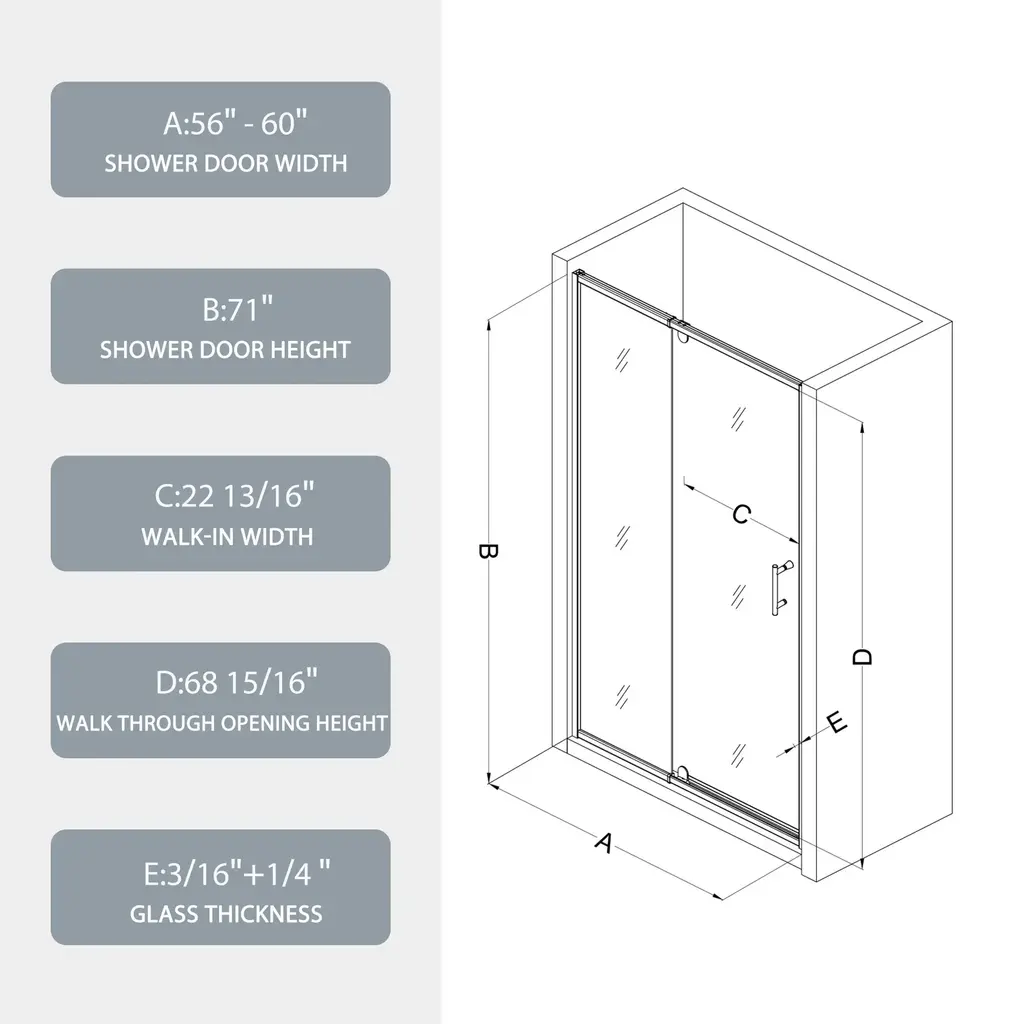Pivot Frame Sliding Shower Door With 6Mm Tempered Glass - 56-60" W X 71" H - Matte Black