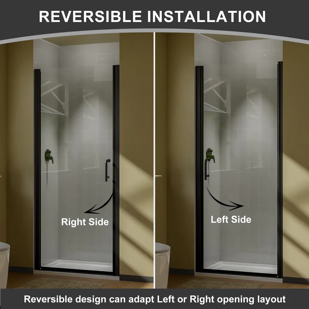 The frameless shower door brings simplicity and practicability to your bathroom with its eye-catching design. It will definitely be a durable component of your bathroom with its superior quality tempered glass and durable stainless steel hardware. The door is reversible in accordance with your decoration requirements. Easy installation, waterproof and durable materials can help us bring you a convenient and wonderful experience when you are enjoying taking a shower.What's Included? Features