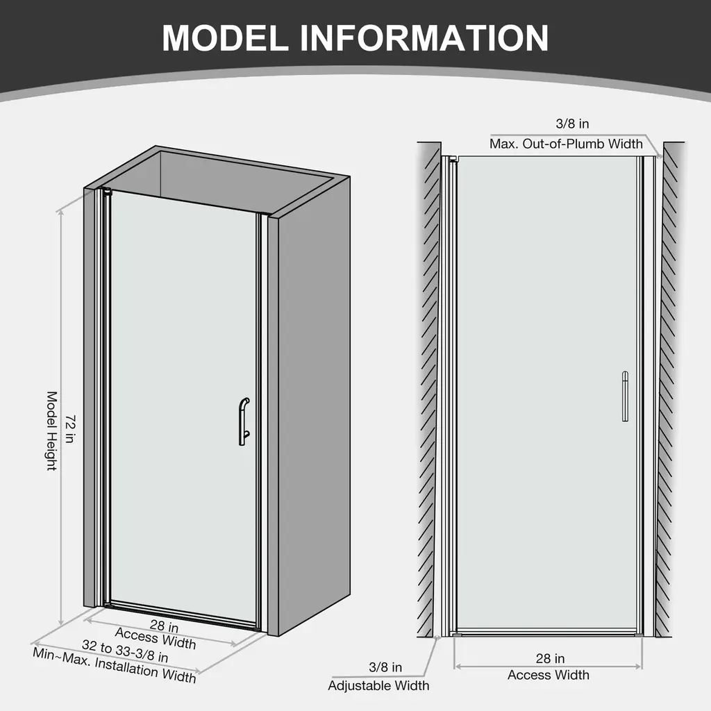 The frameless shower door brings simplicity and practicability to your bathroom with its eye-catching design. It will definitely be a durable component of your bathroom with its superior quality tempered glass and durable stainless steel hardware. The door is reversible in accordance with your decoration requirements. Easy installation, waterproof and durable materials can help us bring you a convenient and wonderful experience when you are enjoying taking a shower.What's Included? Features