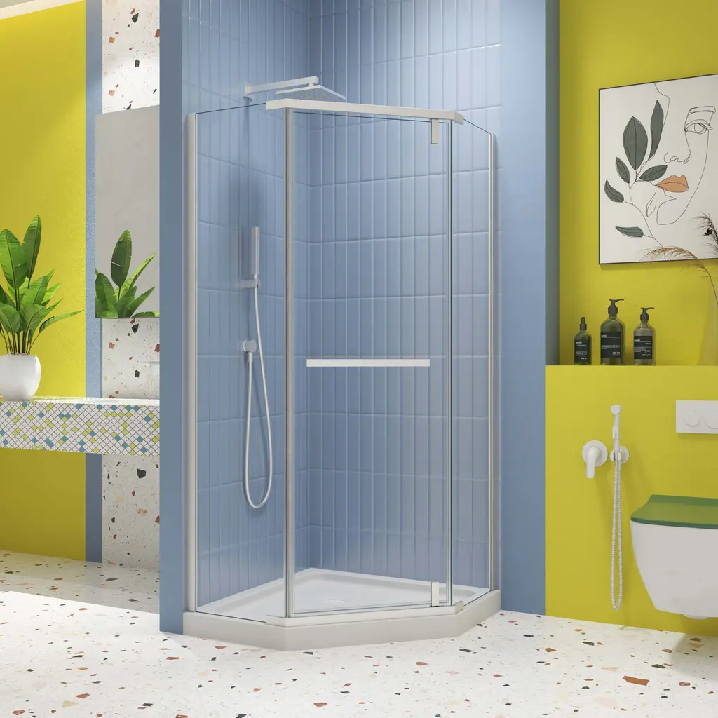 【Product Features】 ★Alu wall channel with quality #304 stainless steel handle, with 36000 times open and close test. ★SGCC 1/4" tempered clear glass ★Smooth and comfortable pivot system ★Good anti-leakage function. ★Stainless steel support bar 【Description】 [Pivot shower door] Size 34.75"x34.75"x72" 1/4" tempered clear glass Stainless steel handle 17.72". Fit for left open or Right open install. Fit for shower pan or floor installation. 【This product is fragile, if there is any damage when you receive the goods, please take a photo and contact us, so that we can quickly verify and deal with you】 【Notes】 1.Size Notice:Manual measurement has been used, there may be some reasonable errort, thanks for your understanding. 2.Color Notice:Due to factors such as display equipment and shooting environment, the color of the item may be slightly different from the picture, which is a normal phenomenon, please refer to the actual item 3.Assembly Notice:Please read assemble manual in advance. Please do not over-tighten nuts, as this may cause distortion or breakage. 4.It is recommended to put a layer of foam or soft cushion on the floor when installing to avoid scratching the floor. 5.If the item has any defects, damage or missing parts, please contact us with pictures or videos so that we can understand your needs and help you quickly, and always remember to retain its original packaging to ensure any return requests. We will try our best to solve any problems you may have. 6.If you receive the wrong product, please attach the product picture, the infographic of the outer package and the picture containing SKUs, so that we can verify and quickly deal with it for you