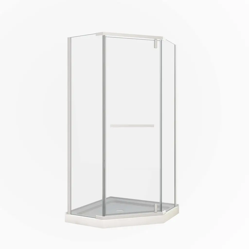 Pivot Shower Door, With 1/4" Tempered Glass , 34.75 In. X 72 In. Frameless Neo-Angle Pivot Shower Enclosure In Matte White. - Clear