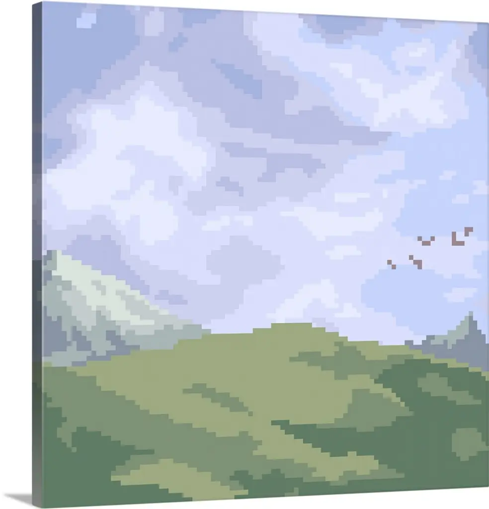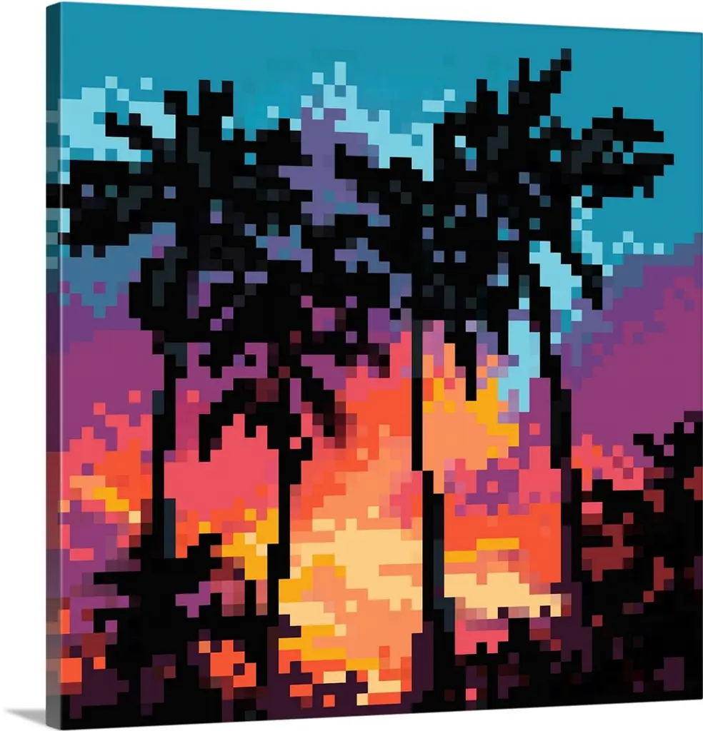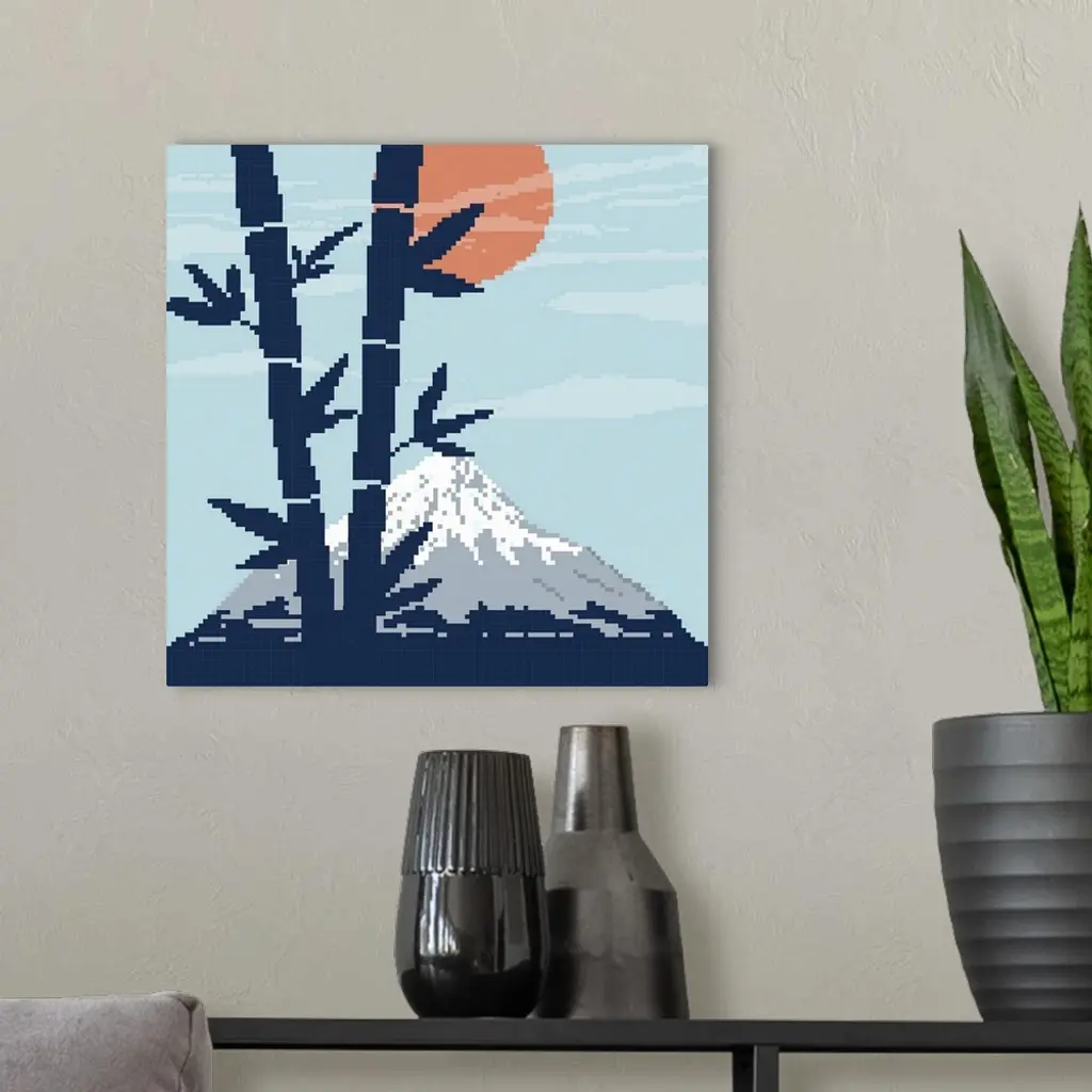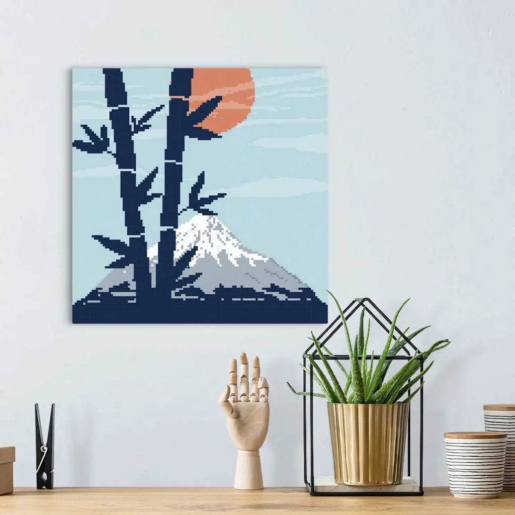 Pixel Bamboo, Mountain Fuji And Red Sun