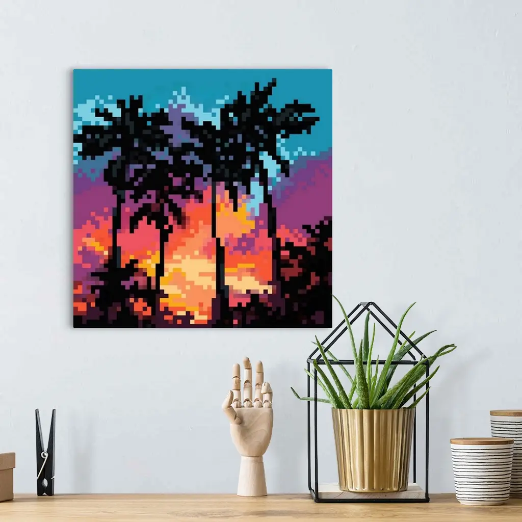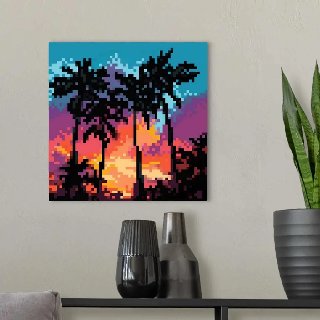Pixel Palm Sunset I wall art for home and office decor. Discover canvas art prints, photos, mural, big canvas art and framed wall art in GreatBigCanvas.com's varied collections.