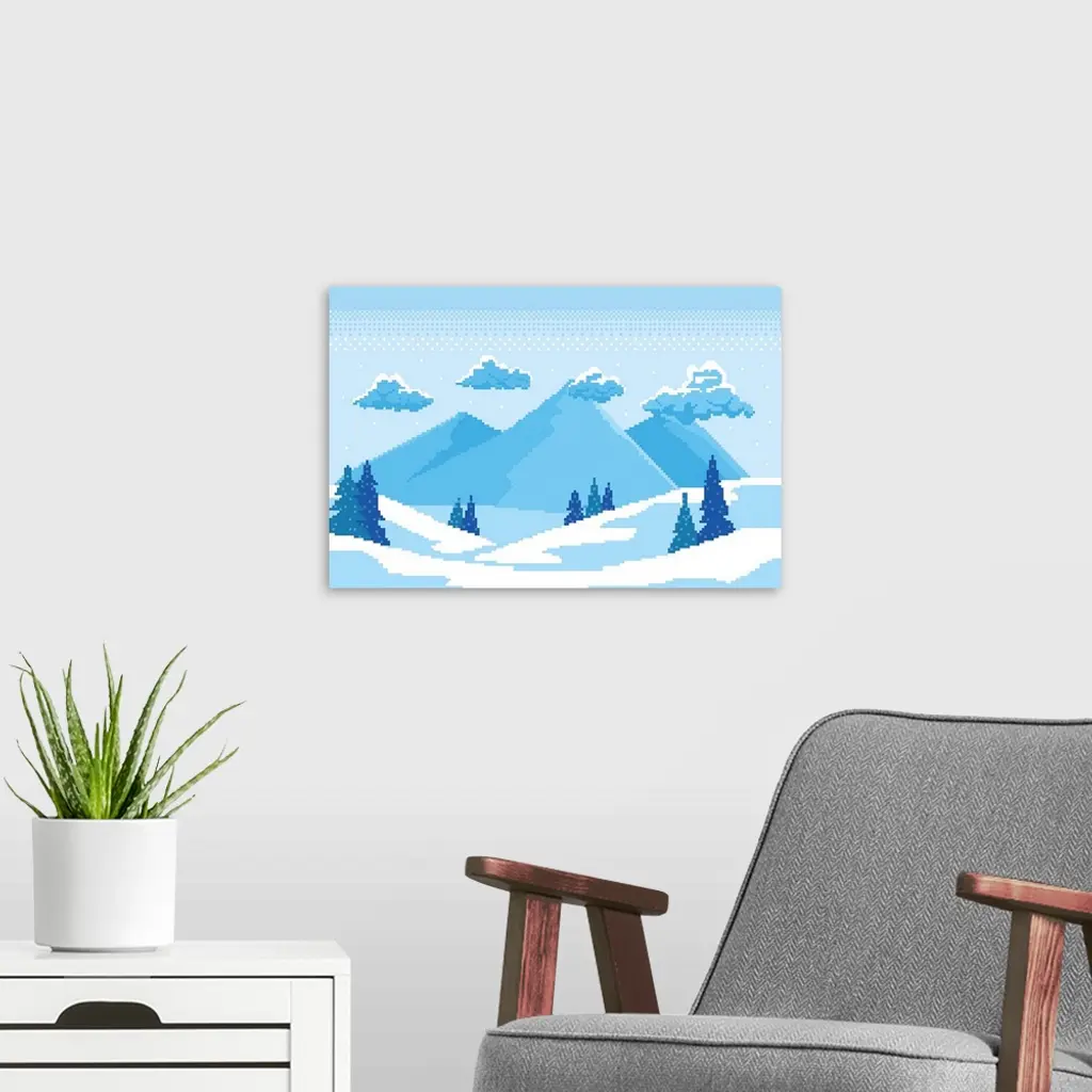 Pixel Winter Fir Trees Covered In White Snow