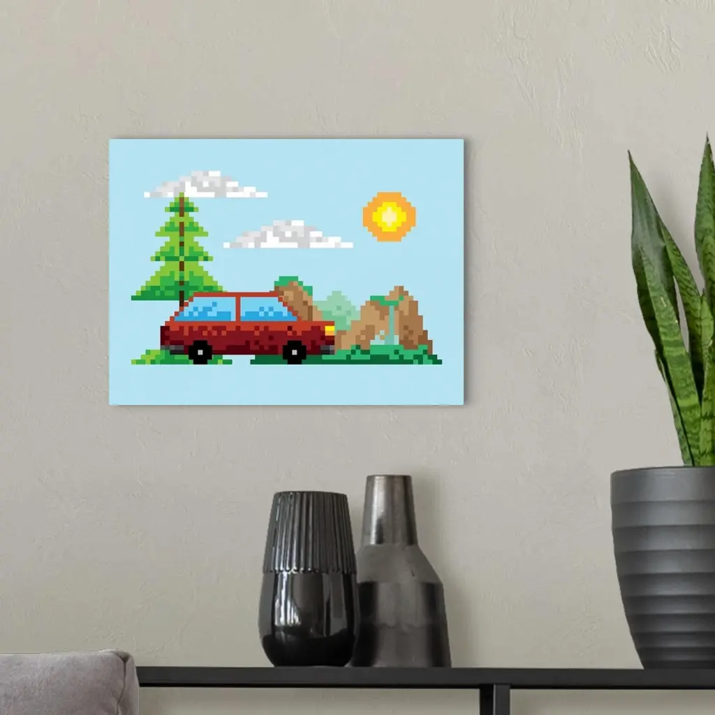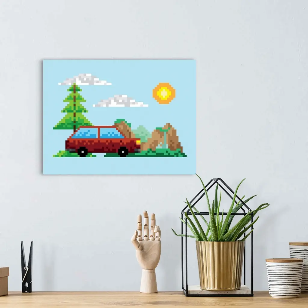 Pixelated Car In Landscape Scene wall art for home and office decor. Discover canvas art prints, photos, mural, big canvas art and framed wall art in GreatBigCanvas.com's varied collections.