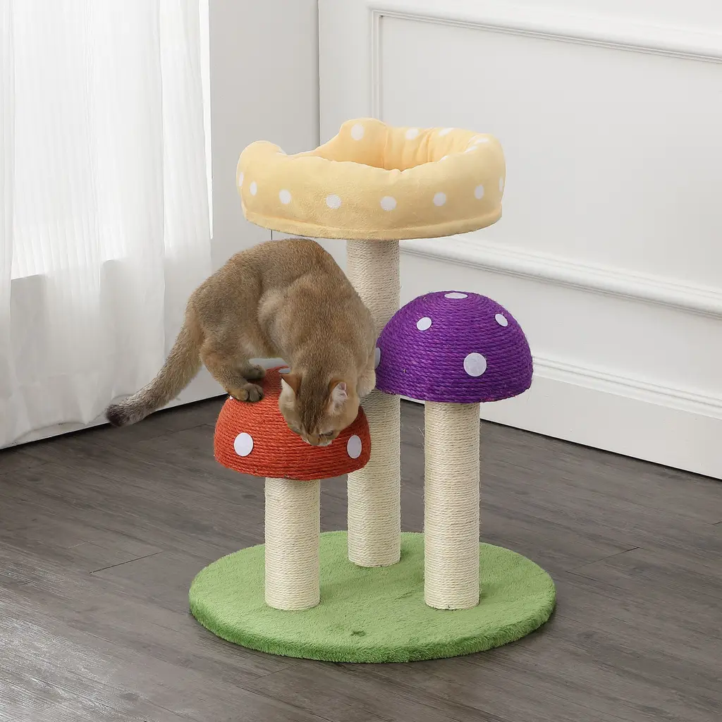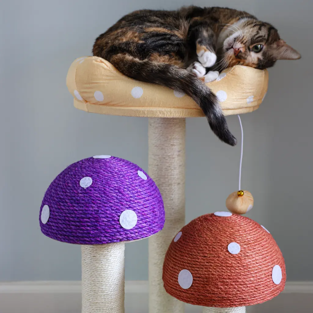 Keep your cats happy and healthy with our cute and sturdy mushroom cat tree. With a soft plush bed for lounging and durable sisal for scratching, it even has a dangling ball toy with a bell. Adorable polka dot mushroom design looks great in any room.Features:Product Care:About us:Our passion is providing high-quality pet products that enhance the lives of both pets and their owners.