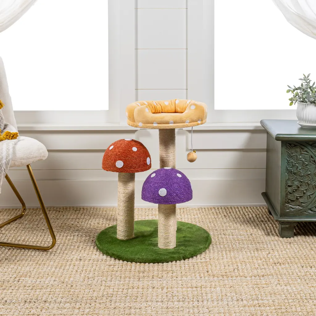 Pixie 22.5" 3-Tier Cottage Sisal Mushroom Cat Tree With Scratching Posts, Napping Perch, And Dangling Bell Toy, Multi - Multi