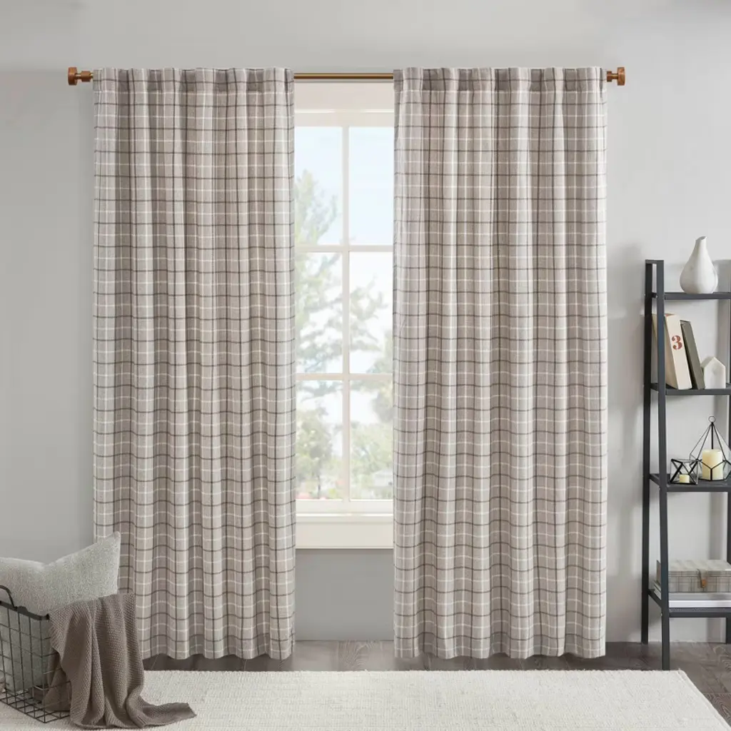 Plaid Rod Pocket And Back Tab Curtain Panel With Fleece Lining Grey 50x95in